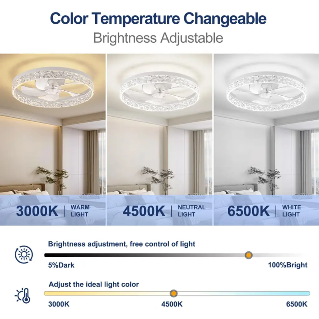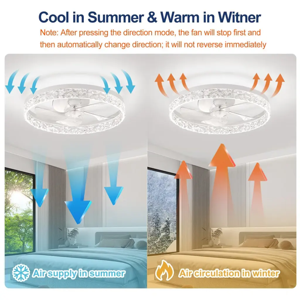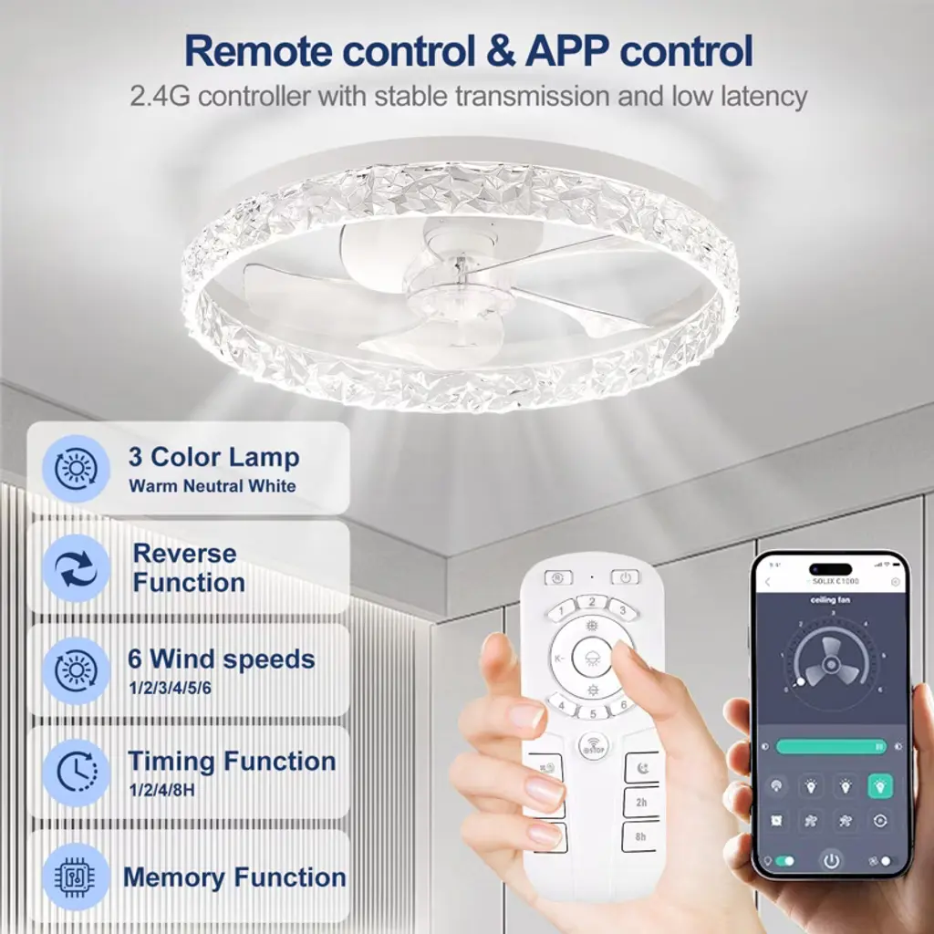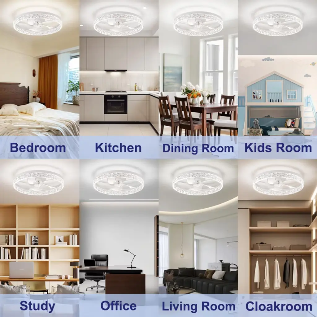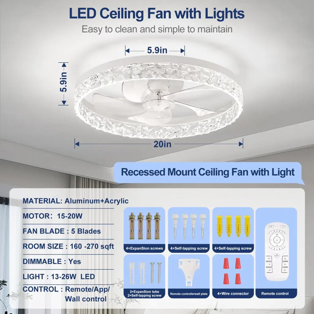 Upgrade your living space with this 20 - inch flush - mount ceiling fan with lights and remote. It features a reversible DC motor, which can cool your room in summer and circulate warm air in winter, enhancing air circulation and reducing energy waste. The energy - saving LED light offers adjustable color temperatures from 3000K to 6500K and stepless dimming from 5% to 100%. Crafted with an aluminum frame and acrylic lampshade, it provides even, eye - friendly illumination. With six wind speeds and a 1/2/4/8 - hour timer, it's suitable for bedrooms, offices, and dining rooms. Installation is a breeze, and the light has a memory function. Control the fan speed, light color, and brightness via the remote or app. Enjoy a comfortable and well - lit environment all year round.