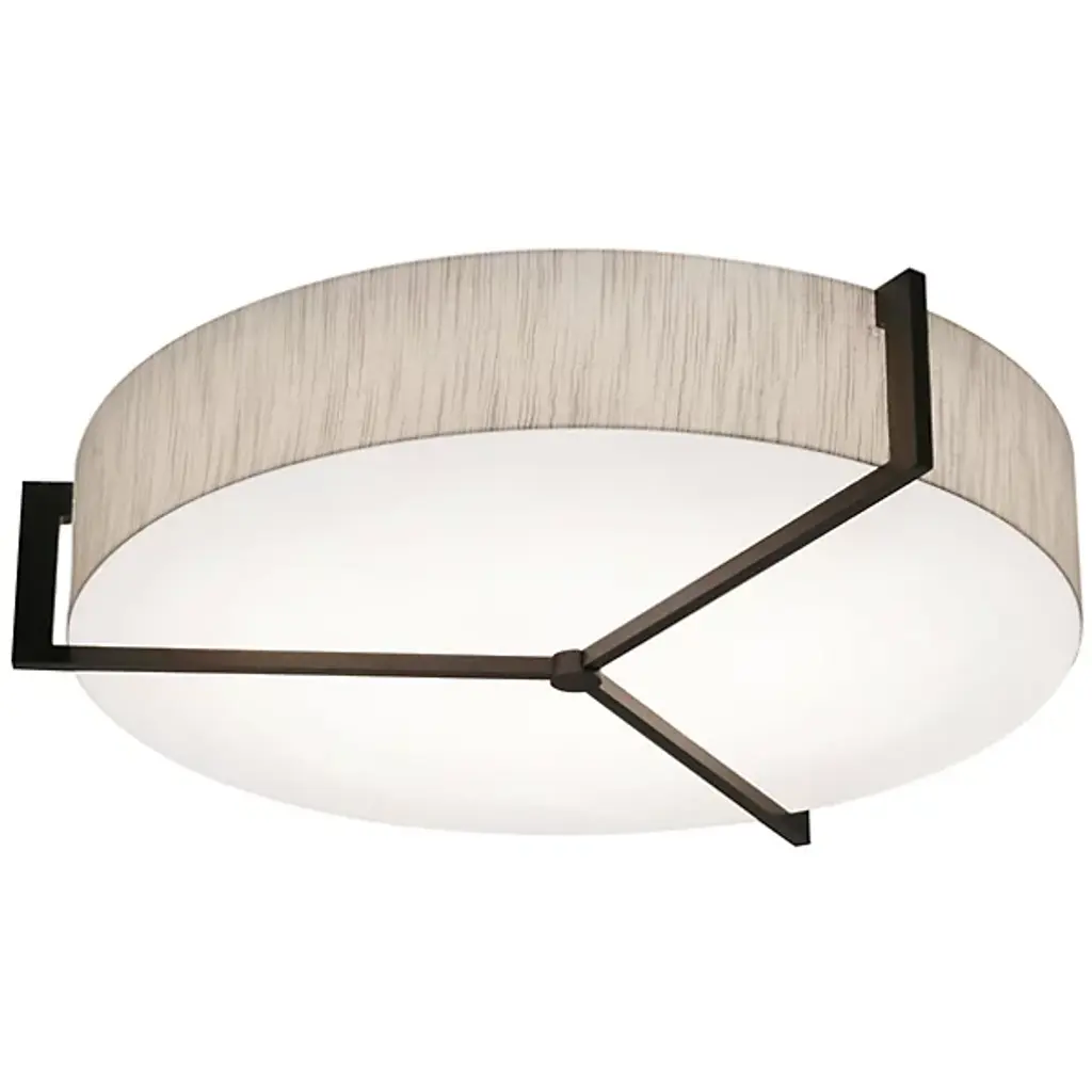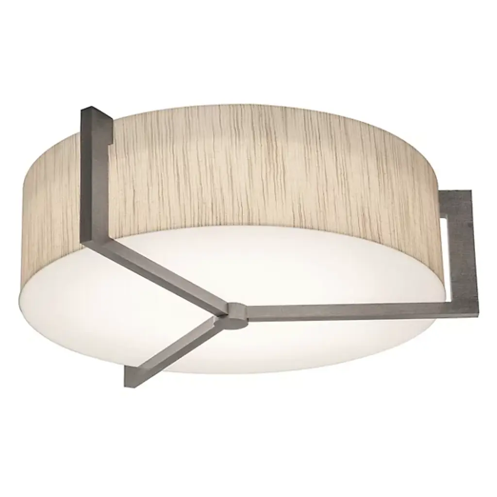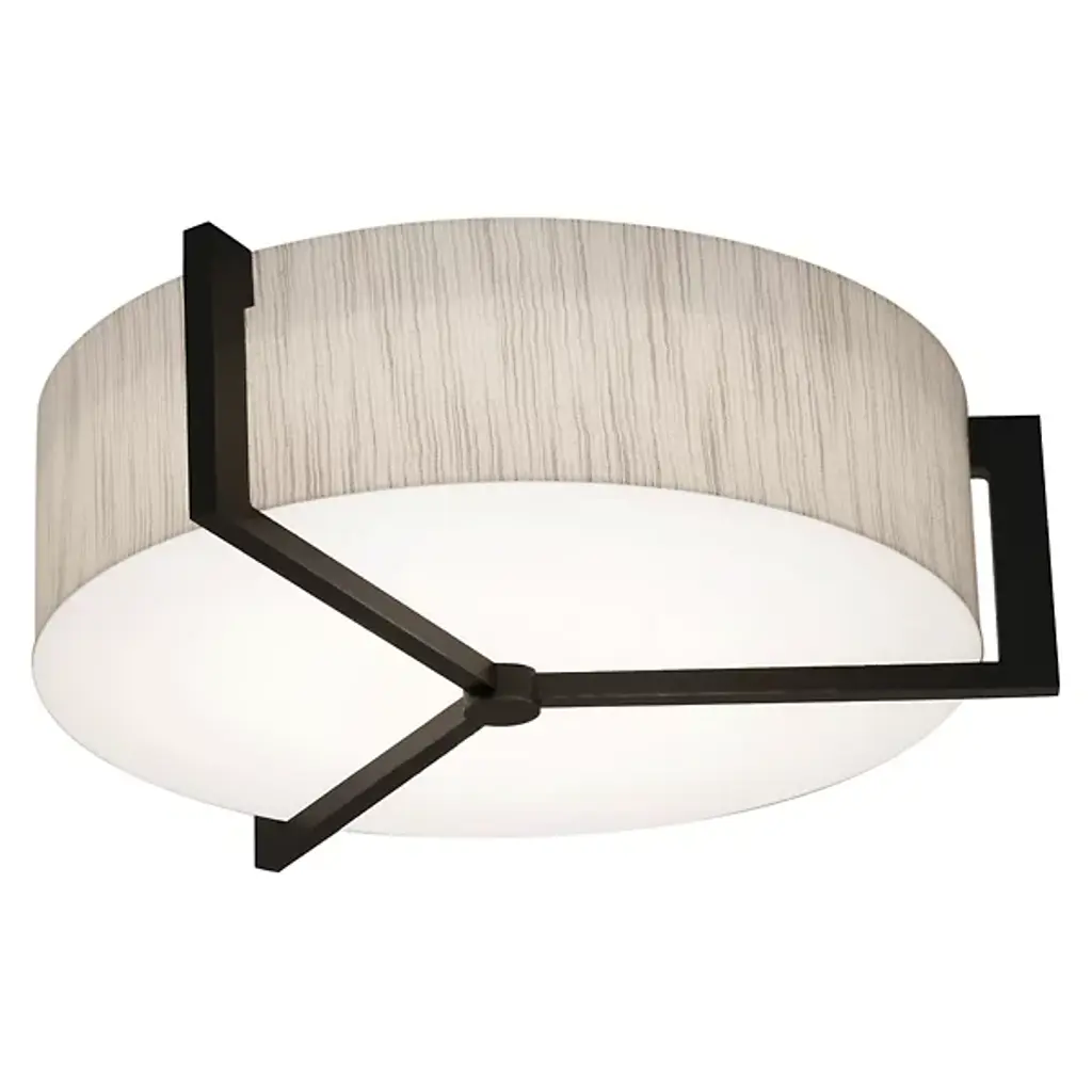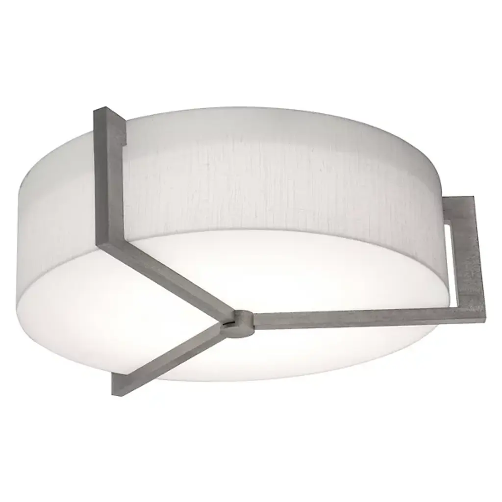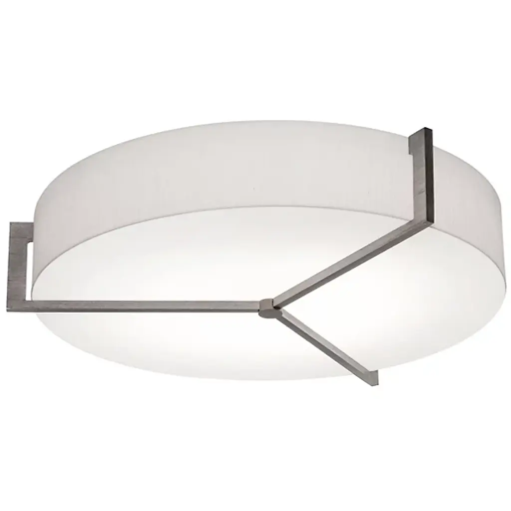 Appealing accents and exquisite illumination. The AFX Lighting Apex Flushmount blends just the right amount of decor into its functional design, giving you a stylish piece that can light any room. The circular body uses two diffusers to spell layered lighting into the surrounding space, with a LumaFuse shade around the outer edge and an Acrylic diffuser covering the underside. The combination of Fabric and Acrylic in the LumaFuse creates a beautiful texture and rich lighting, enhancing the ambient glow that filters out from the fixture. Along the lower disc, Metal arms form an appealing triangular pattern, dissecting the shade while still leaving plenty of open surface through which downlighting can pass.