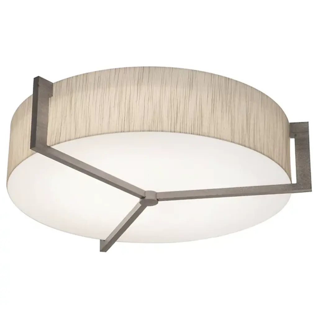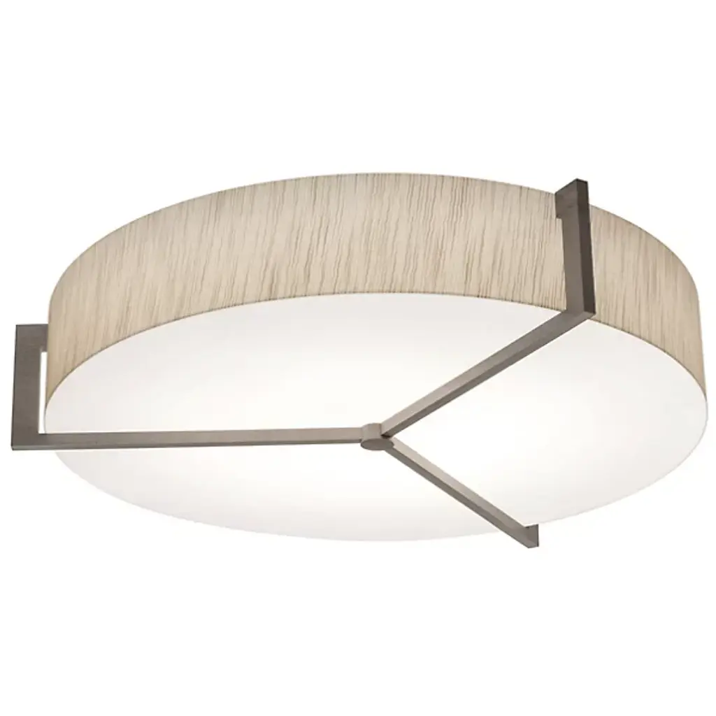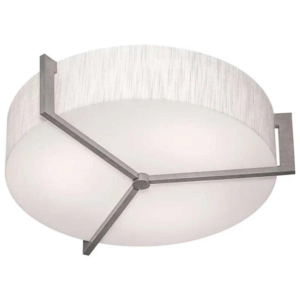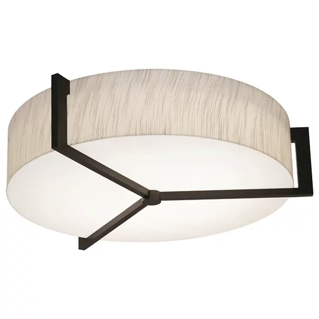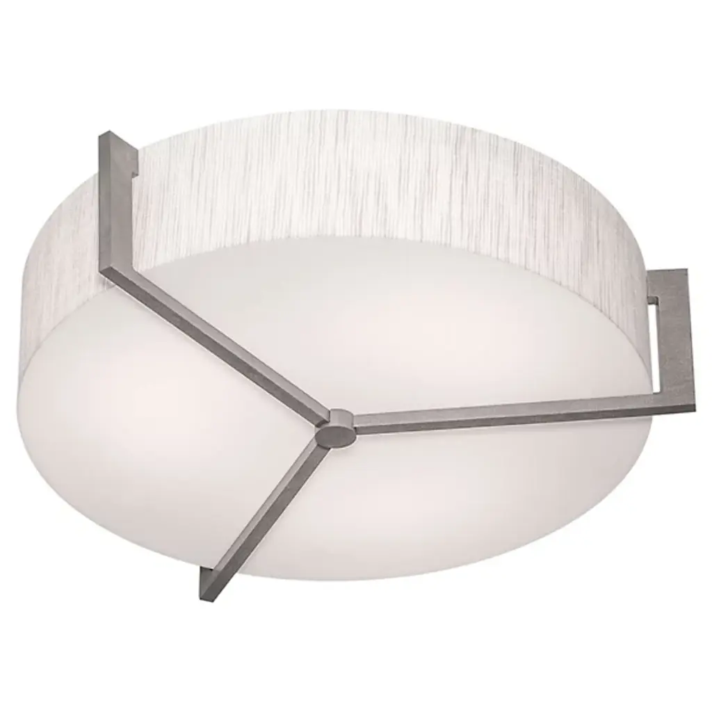 Appealing accents and exquisite illumination. The AFX Lighting Apex Flushmount blends just the right amount of decor into its functional design, giving you a stylish piece that can light any room. The circular body uses two diffusers to spell layered lighting into the surrounding space, with a LumaFuse shade around the outer edge and an Acrylic diffuser covering the underside. The combination of Fabric and Acrylic in the LumaFuse creates a beautiful texture and rich lighting, enhancing the ambient glow that filters out from the fixture. Along the lower disc, Metal arms form an appealing triangular pattern, dissecting the shade while still leaving plenty of open surface through which downlighting can pass.