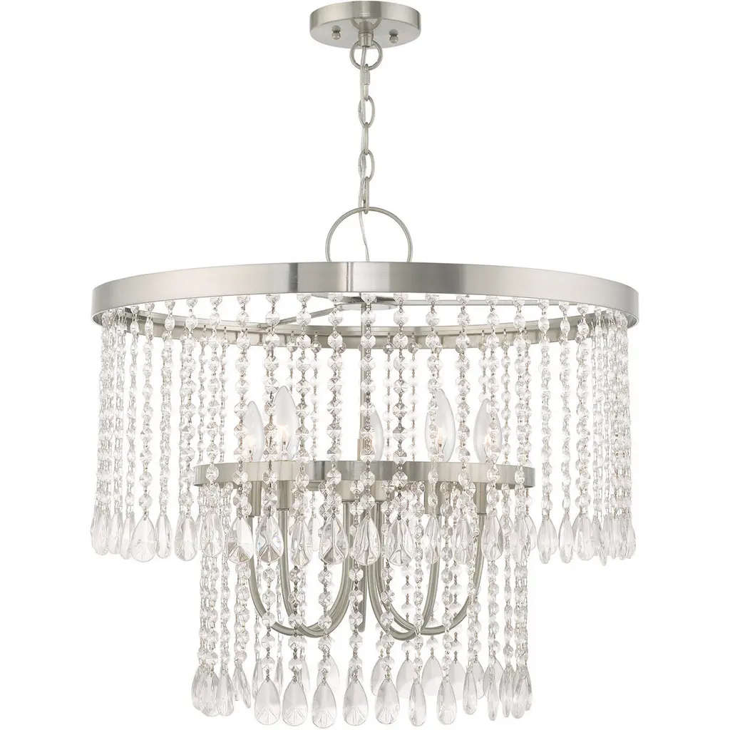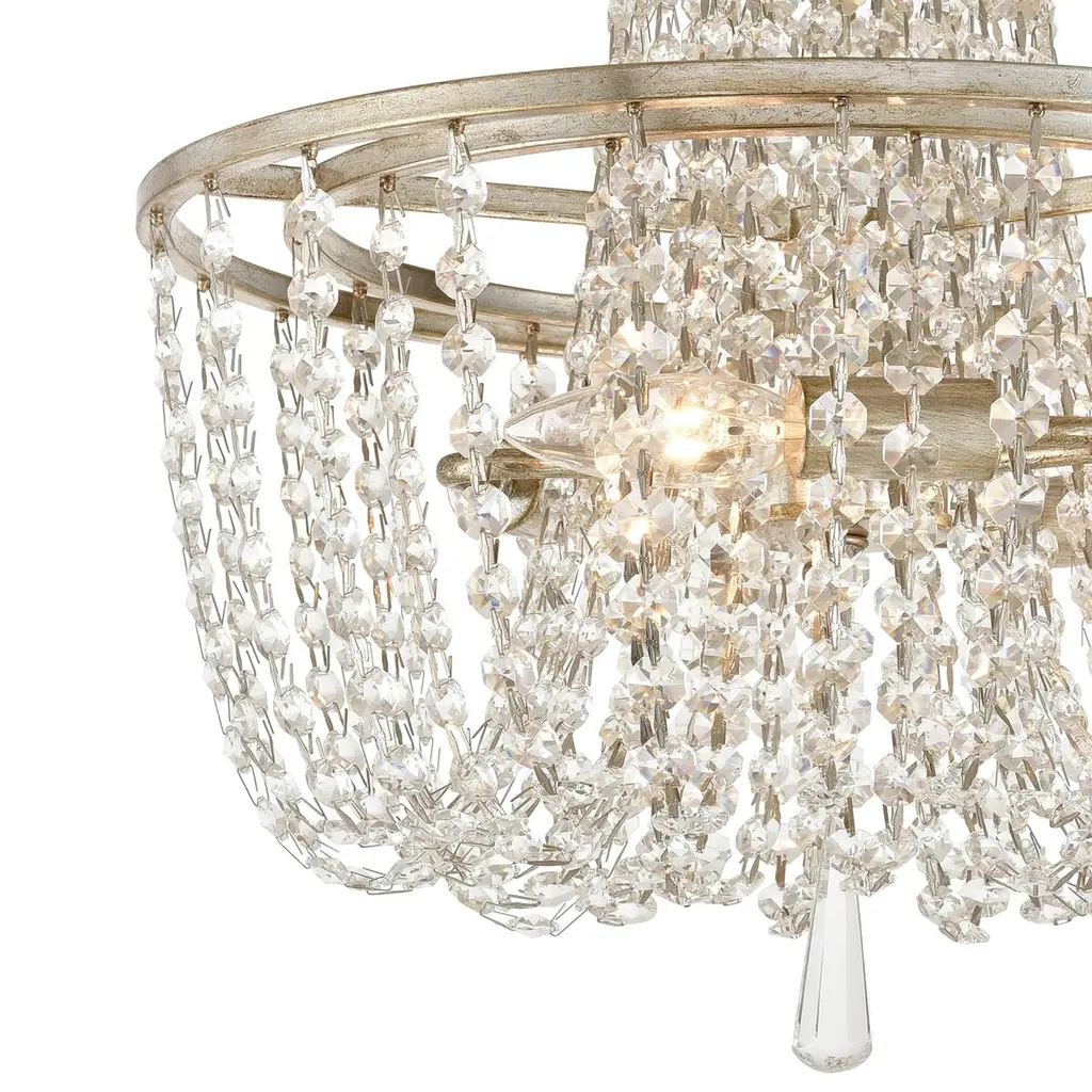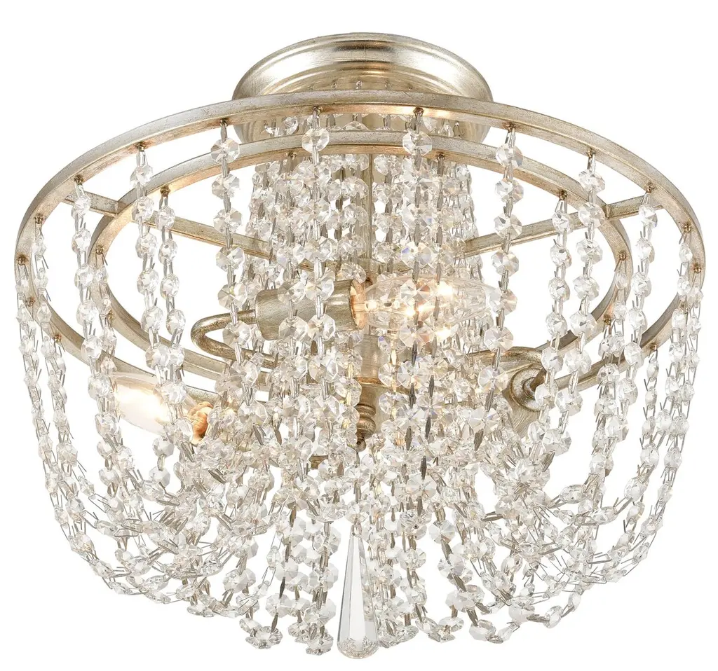 Hundreds of hand-cut crystal beads adorn this opulent flush mount, which is beautifully crafted of steel with an antiqued silver finish. Hardwired.