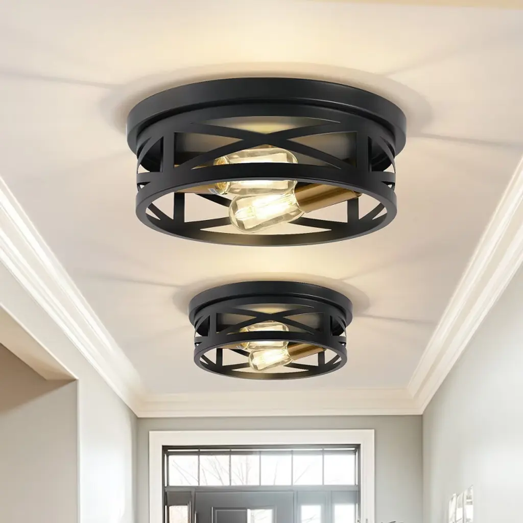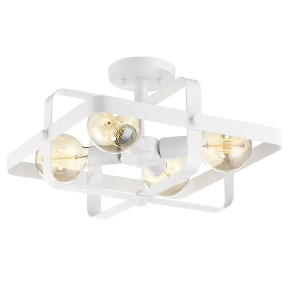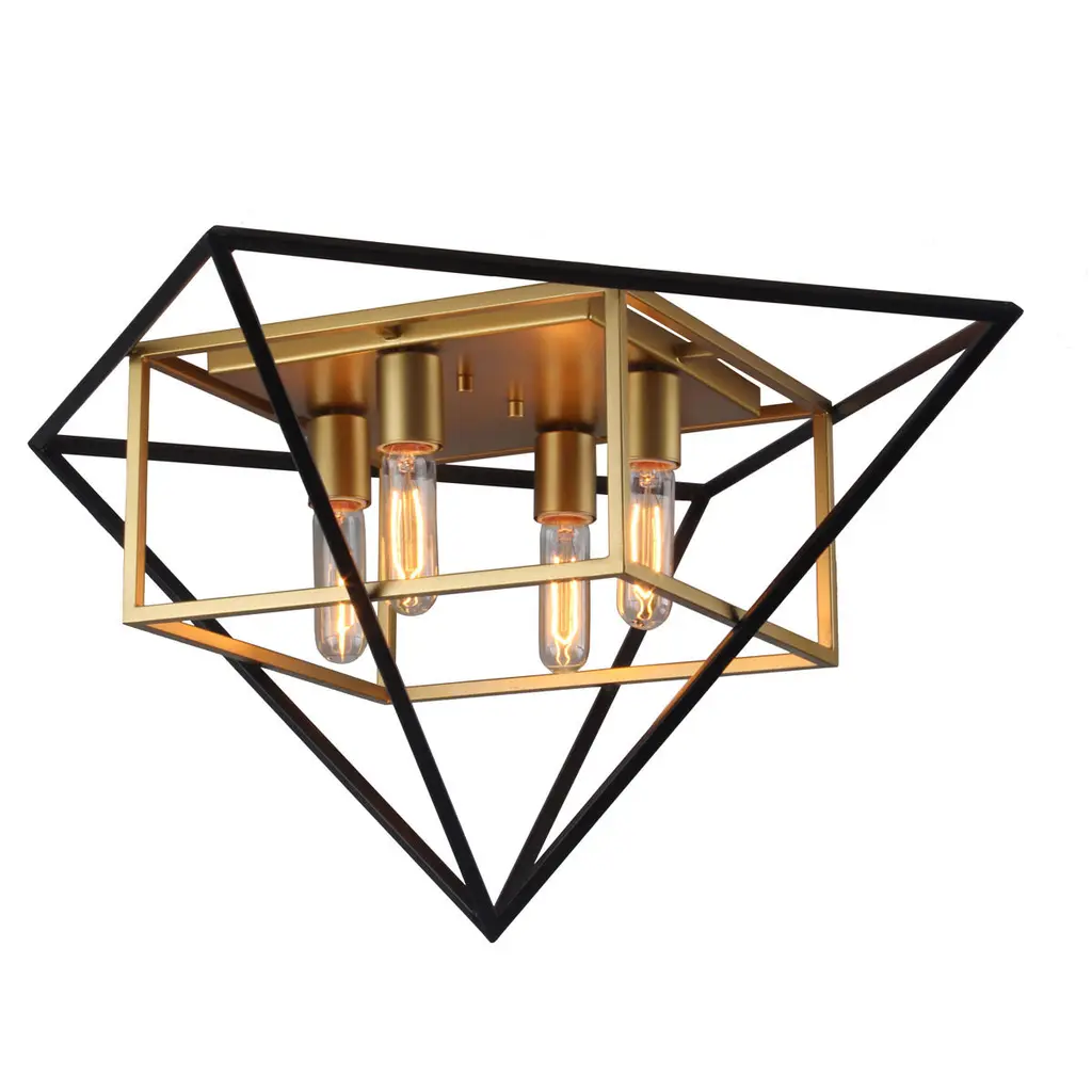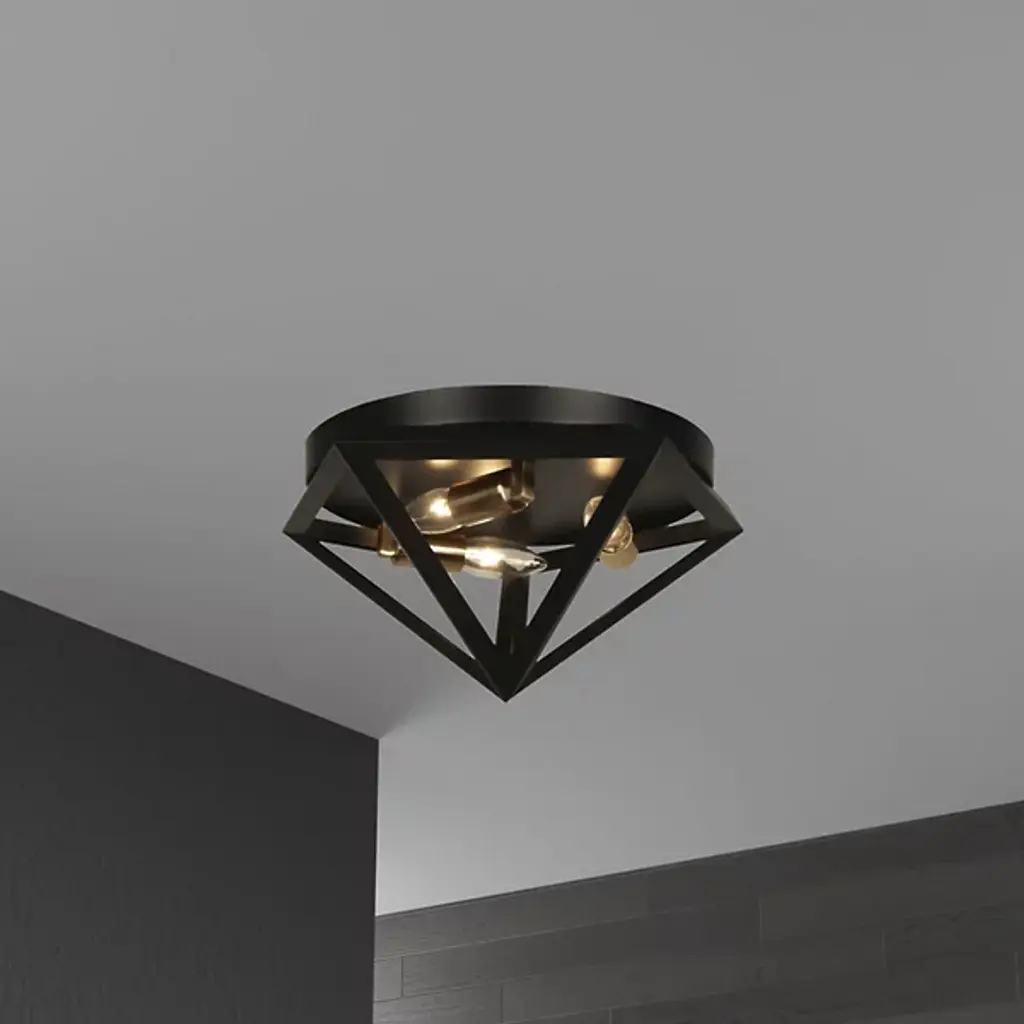 The Archello Flushmount by Dainolite is a striking and structured addition to spaces. Nestled next to the ceiling, a caged construction tapers around a set of exposed bulbs, creating a diamond-shaped frame. This simple and geometric silhouette is dressed up with a bold finish, and an even layer of light playfully escapes through each of the open sections of this piece, making a confident statement in the rooms it brightens.