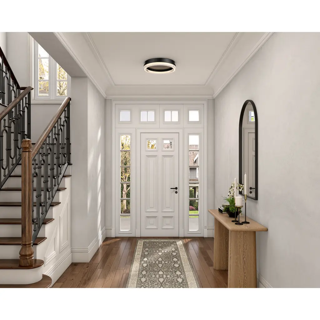 Elevate your space with the modern elegance of the LED flushmount from the Ari Collection. Its sleek black frame and ribbed clear bottom lens create a soft, mesmerizing glow. This model has a 3CCT switch to choose the color temperature of your preference (3K, 4K, 5K).