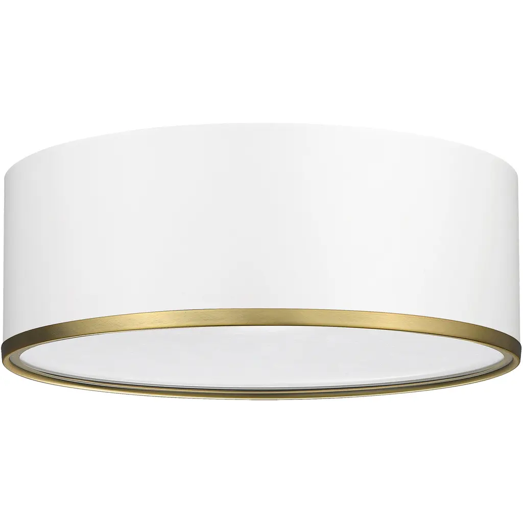 Introducing a three-light flush mount in matte white with rubbed brass trim to inspire your contemporary living space. Crafted from steel, this flush mount light is perfect or illuminating a small foyer, hallways, or your home office.