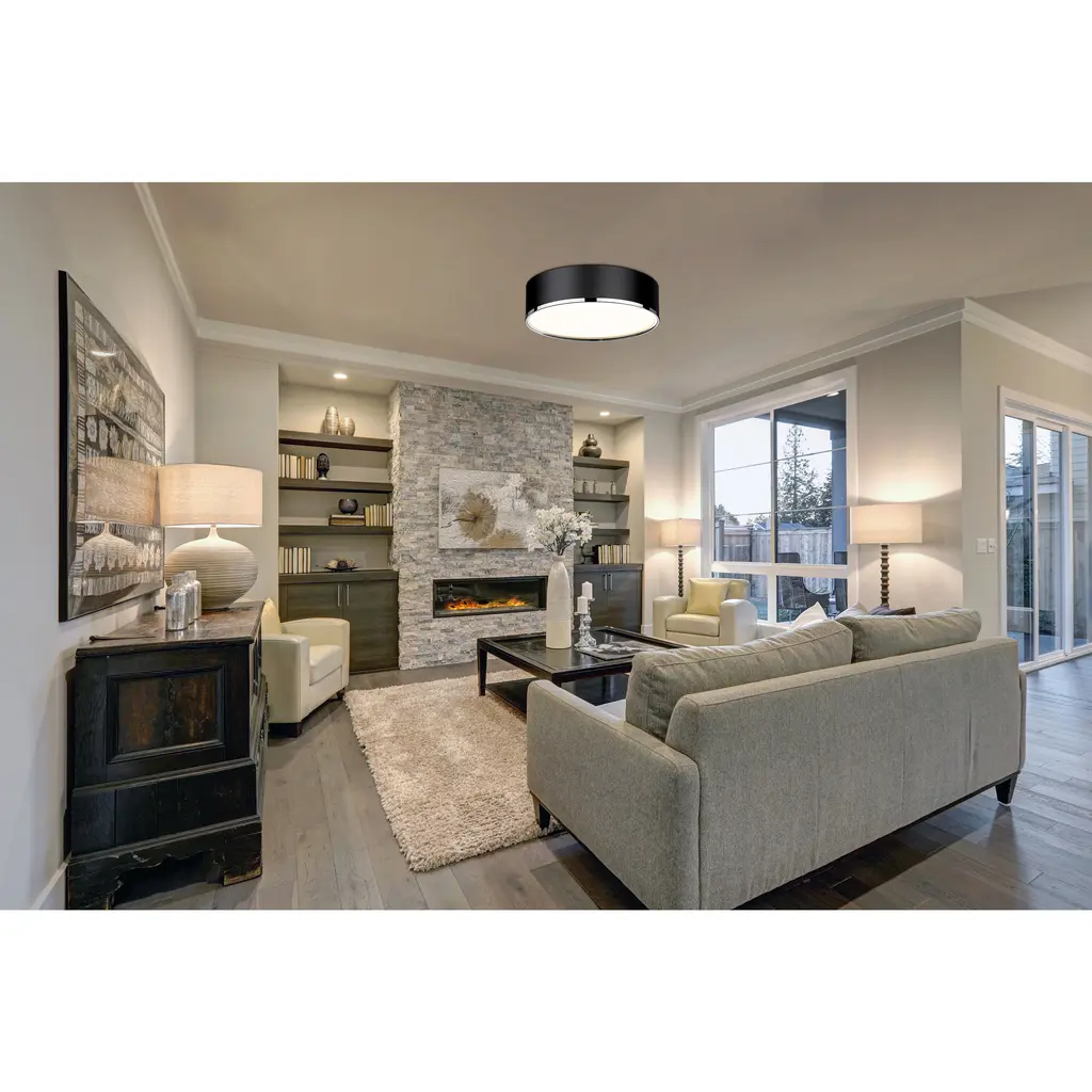It's easy to make a contemporary statement with this four-light flush mount fixture. Four bulbs make for maximized illumination in your space. The matte black shade is designed from steel with an eye-catching chrome trim, offering the perfect pick-me-up for small foyers, hallways, home offices, and more.