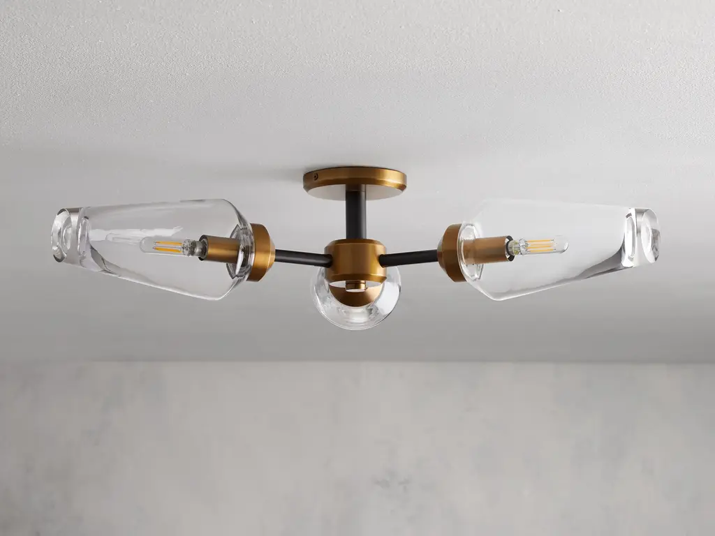 With dense, mouth-blown glass living harmoniously with bronze and brass accents, the striking silhouette of our Arrow Lighting Collection creates a perfectly asymmetrical yet linear design.