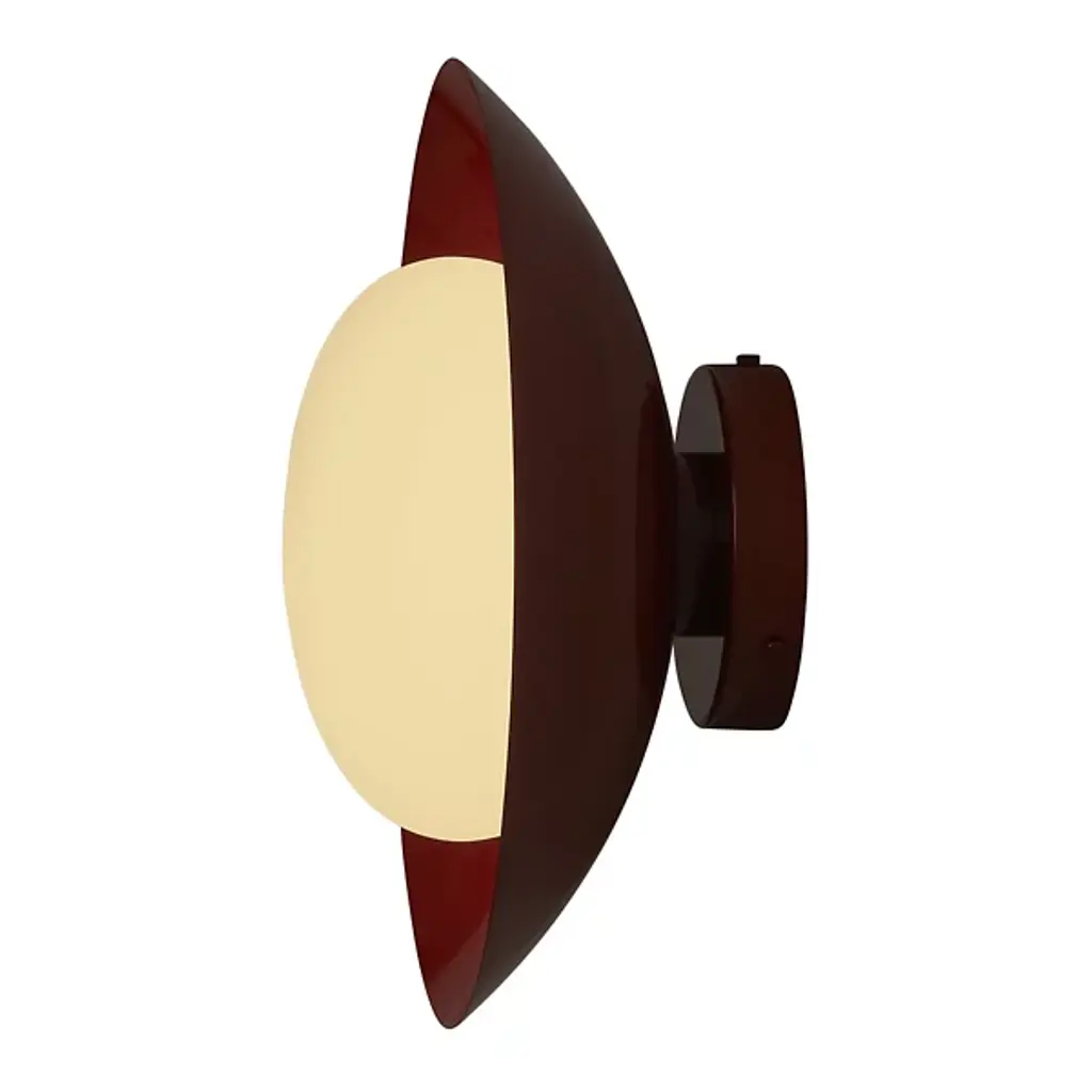 The inspiration behind the Arundel Mushroom Outdoor Wall / Flushmount by In Common With transforms exterior wall and ceiling surfaces with eloquent ease. A remarkable design dating its birth back to an unexpected encounter—a curious "wok-like light on a swivel" discovered at a Maine garage sale, this unique fixture incorporates a mushroom-shaped, hand-blown glass diffuser nestled within the gracefully curved disc of an Arundel shade, both expertly fashioned from robust steel to cast a comforting, golden glow in all directions. Its distinctive and versatile design lends itself well to wall or ceiling mounting, providing exceptional adaptability with its wet-listed lamping and customizable installation options.