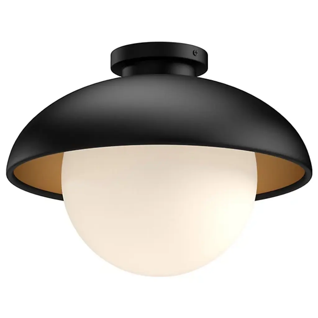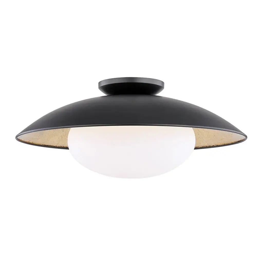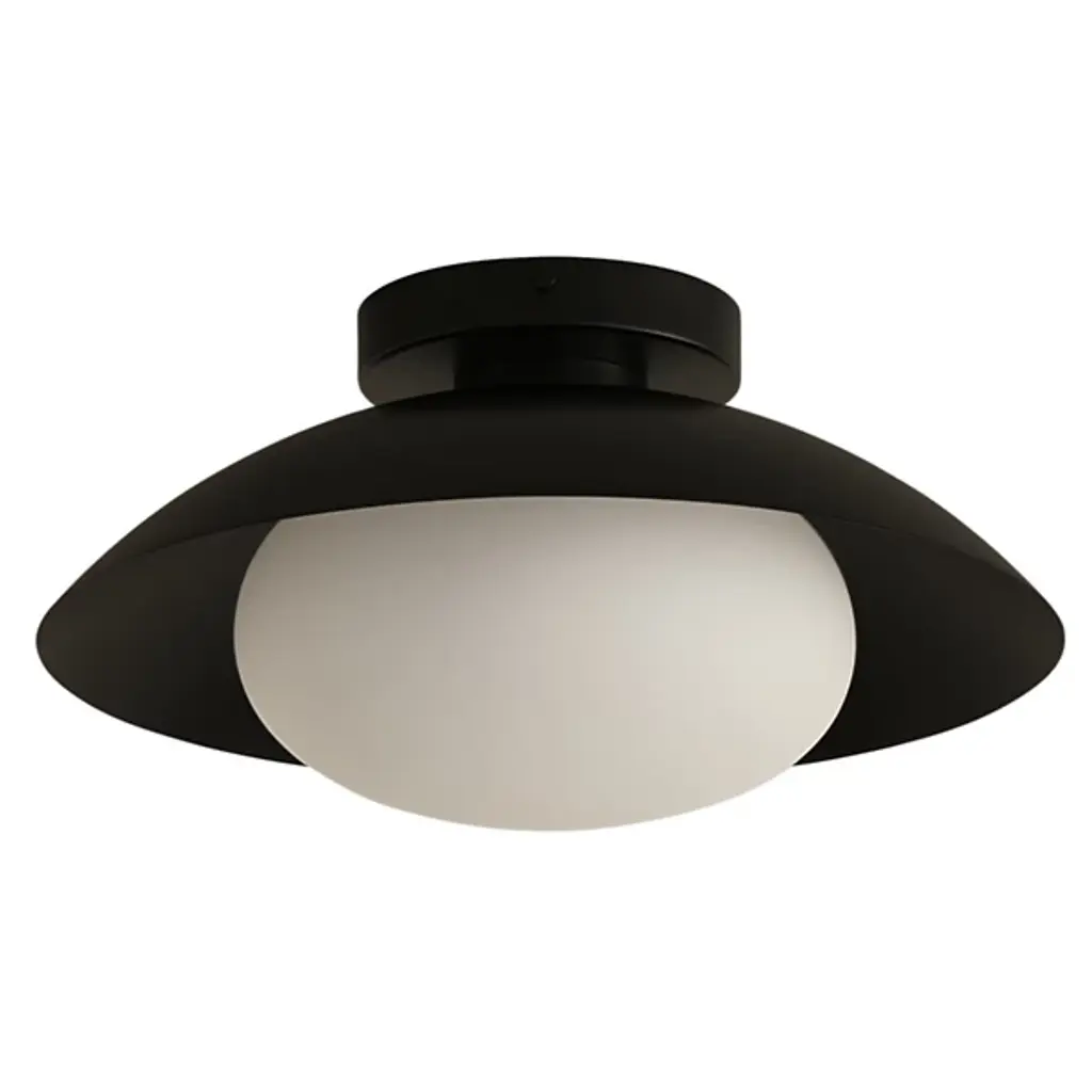 The inspiration behind the Arundel Mushroom Outdoor Wall / Flushmount by In Common With transforms exterior wall and ceiling surfaces with eloquent ease. A remarkable design dating its birth back to an unexpected encounter—a curious "wok-like light on a swivel" discovered at a Maine garage sale, this unique fixture incorporates a mushroom-shaped, hand-blown glass diffuser nestled within the gracefully curved disc of an Arundel shade, both expertly fashioned from robust steel to cast a comforting, golden glow in all directions. Its distinctive and versatile design lends itself well to wall or ceiling mounting, providing exceptional adaptability with its wet-listed lamping and customizable installation options.