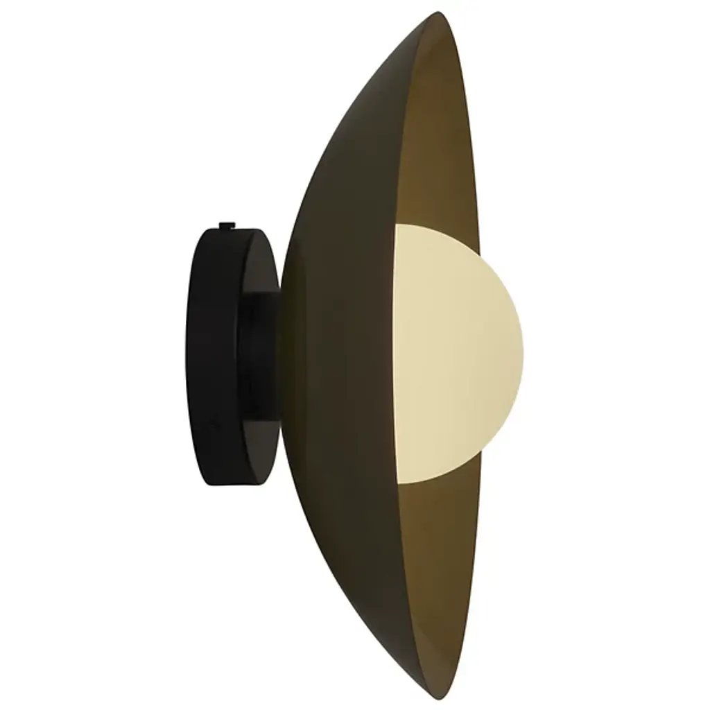 The Arundel Orb Outdoor Wall / Flushmount from In Common With traces its origins back to an unexpected discovery—a "weird, wok-like light on a swivel at a garage sale in Maine." This unexpected fixture integrates a spherical, hand-blown glass diffuser within the gentle arcing disc of an Arundel shade, both meticulously crafted from strong steel to radiate a warm, golden glow. Its design is memorable and versatile, easily mounted on walls or ceilings, and provides exceptional flexibility with its wet-listed lamping and customizable mounting options. Elements of Contemporary and Artisanal Modern styles converge as the design harmonizes sleek surfaces with artisanal craftsmanship to deliver a stunning and distinctive lighting solution that transmits layers of radiant ambiance evenly in all directions.