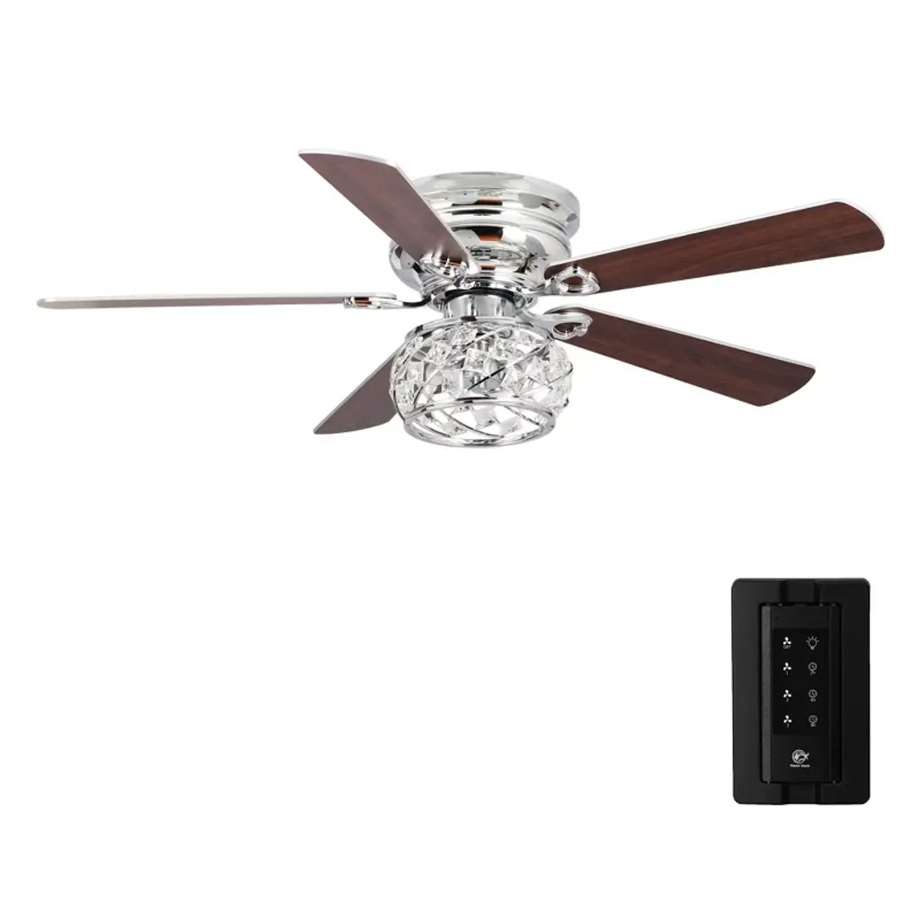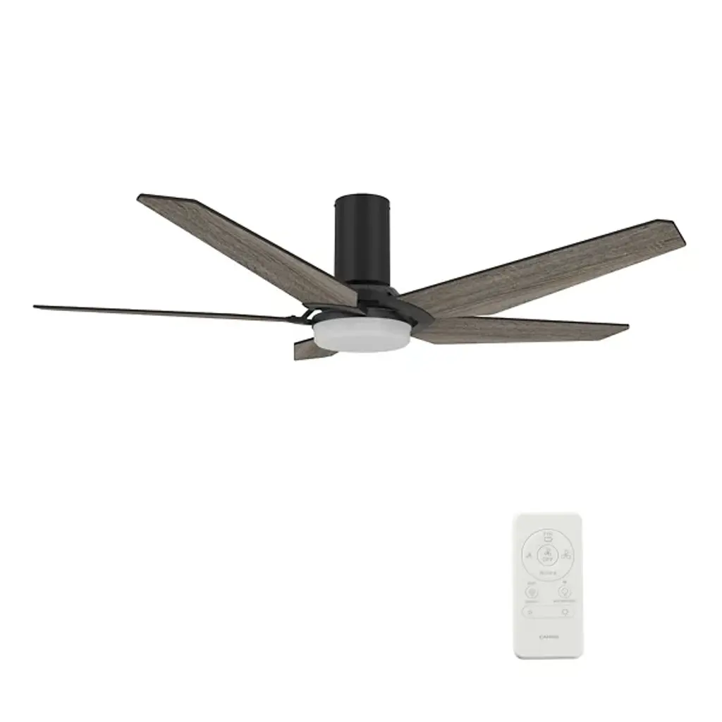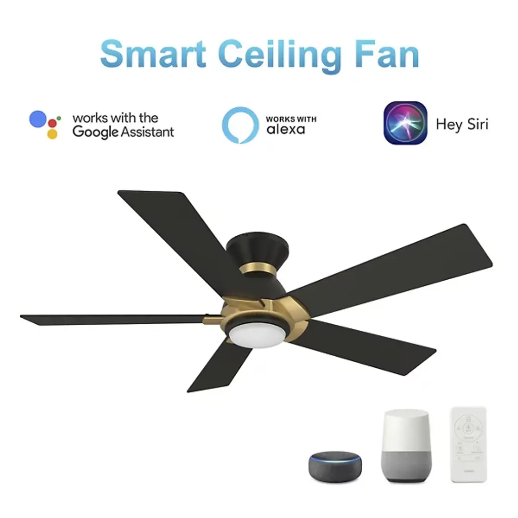 Give your home a distinguished look with the Ascender LED Smart Flushmount Ceiling Fan by Carro USA. The eyes are drawn to the banded embellishment that encircles the covering of an AC motor. The hourglass-shaped housing provides space for the motor to set the blades of this ceiling fan in motion. A pleasant feeling of circulation fills your room, keeping you cool and tranquil. Adjust the fan’s power and the LED light’s brightness from an easily accessible wall control.