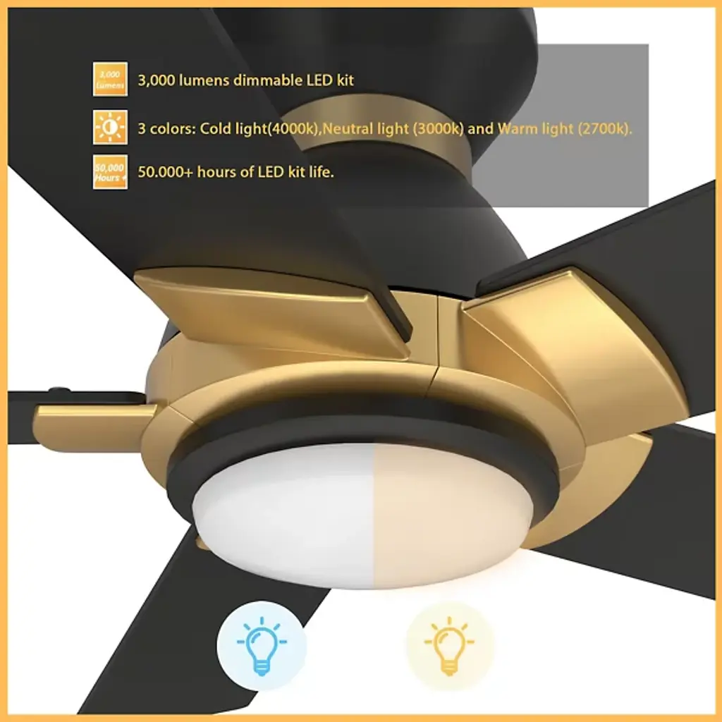 Give your home a distinguished look with the Ascender LED Smart Flushmount Ceiling Fan by Carro USA. The eyes are drawn to the banded embellishment that encircles the covering of an AC motor. The hourglass-shaped housing provides space for the motor to set the blades of this ceiling fan in motion. A pleasant feeling of circulation fills your room, keeping you cool and tranquil. Adjust the fan’s power and the LED light’s brightness from an easily accessible wall control.
