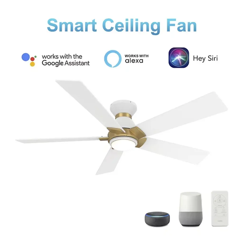 Give your home a distinguished look with the Ascender LED Smart Flushmount Ceiling Fan by Carro USA. The eyes are drawn to the banded embellishment that encircles the covering of an AC motor. The hourglass-shaped housing provides space for the motor to set the blades of this ceiling fan in motion. A pleasant feeling of circulation fills your room, keeping you cool and tranquil. Adjust the fan’s power and the LED light’s brightness from an easily accessible wall control.
