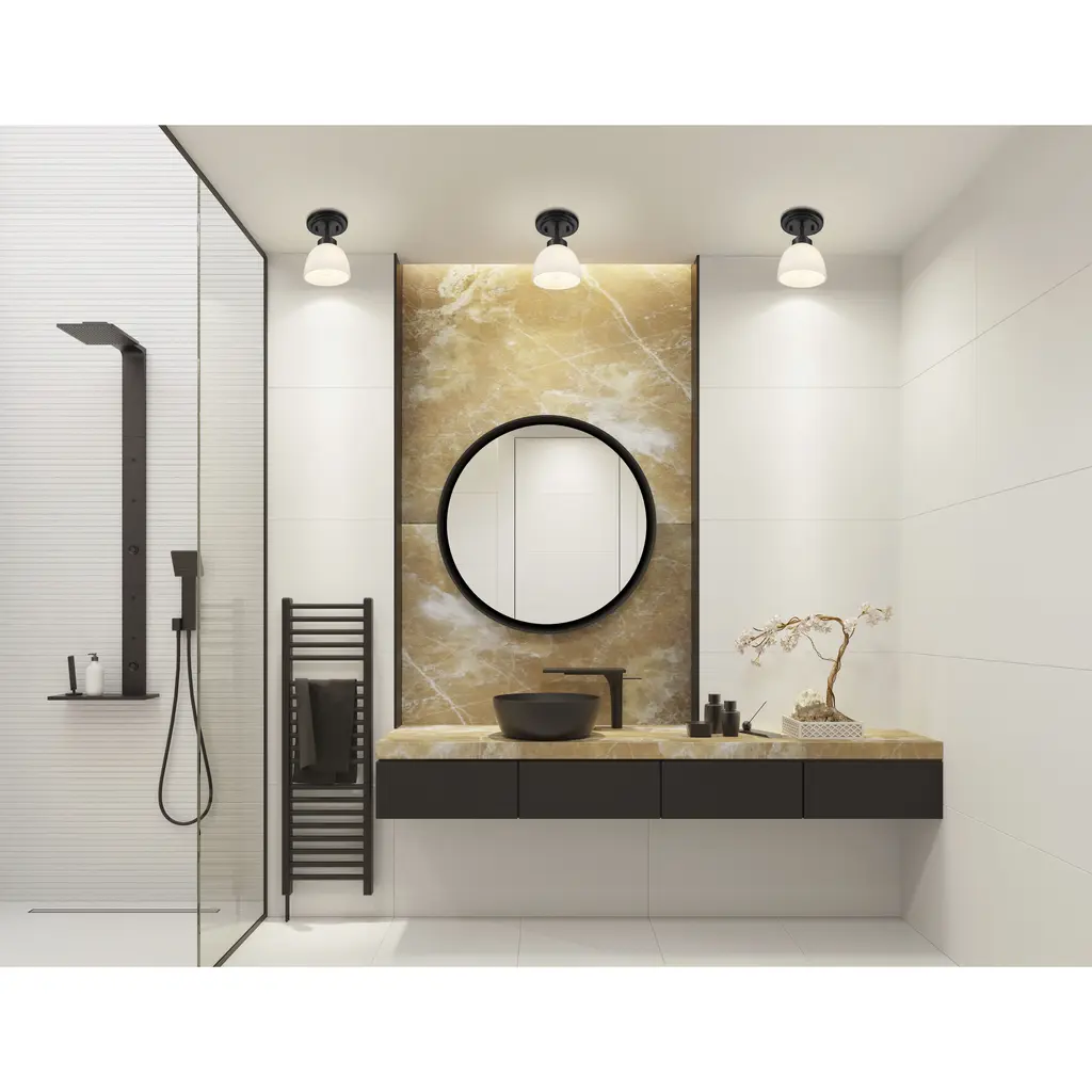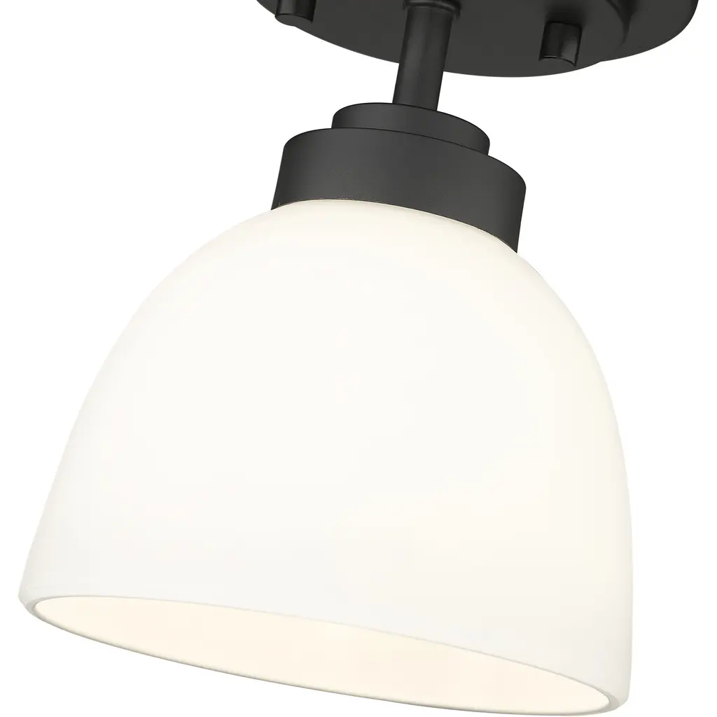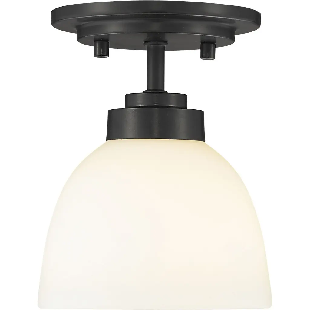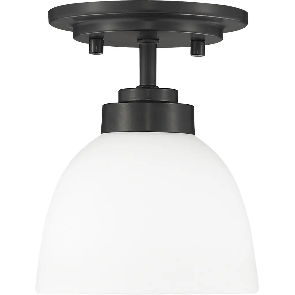 Make lighting work as a decor staple in a room devoted to easy living and solid taste from floor to ceiling. With a gorgeous Matte Black finish metal mount, this single-light flush mount ceiling light features a domed Matte Opal glass shade that creates a compelling silhouette and blends with surrounding furnishings.
