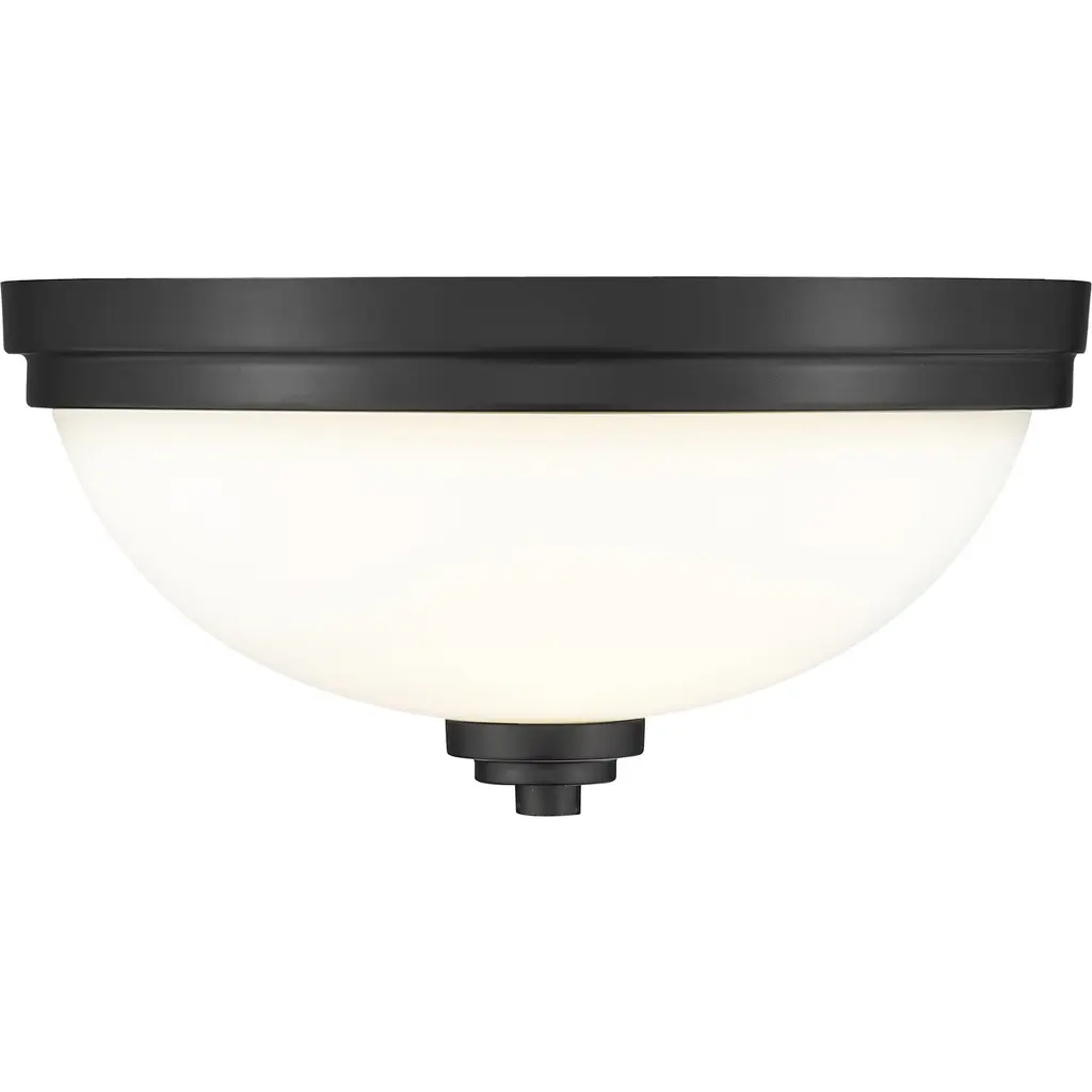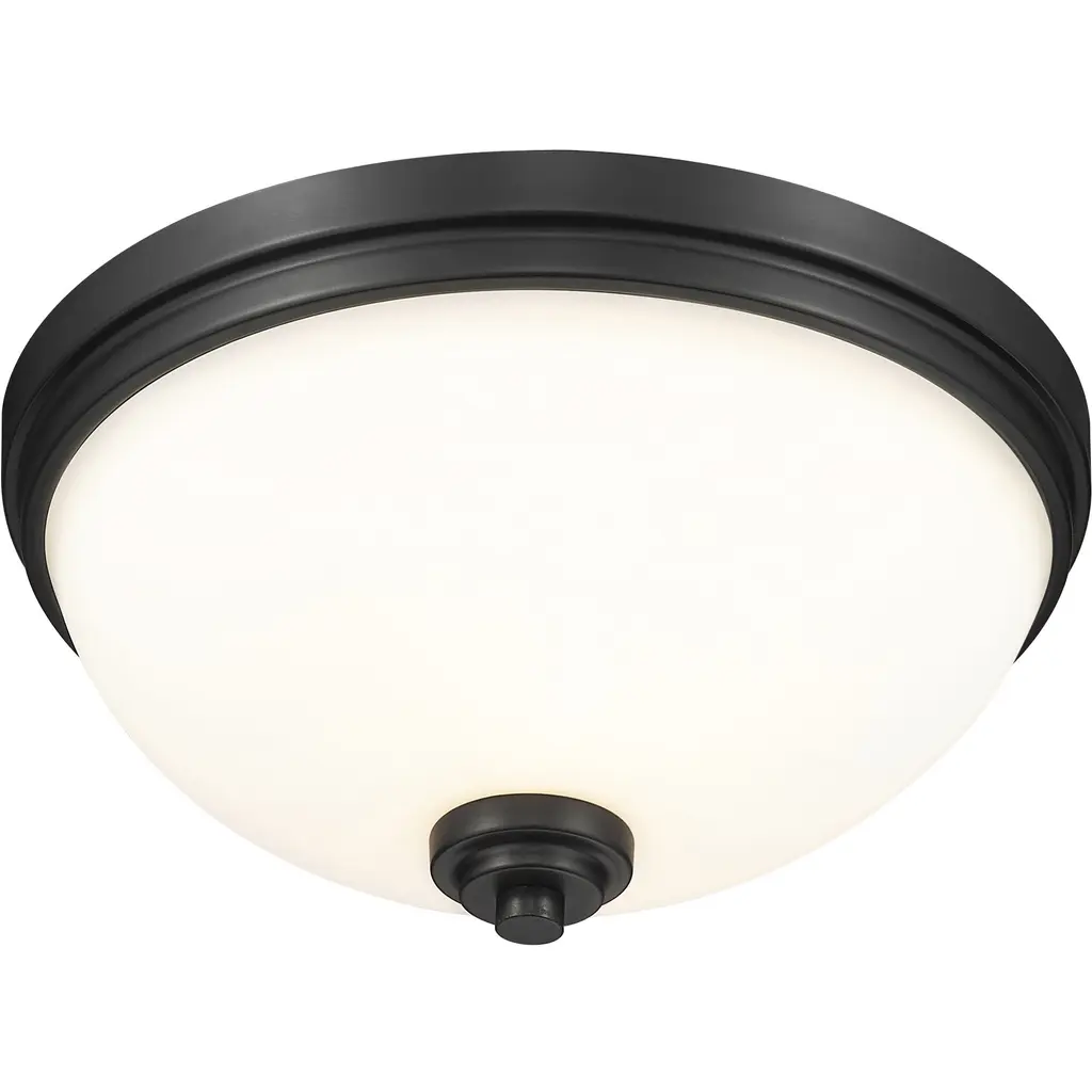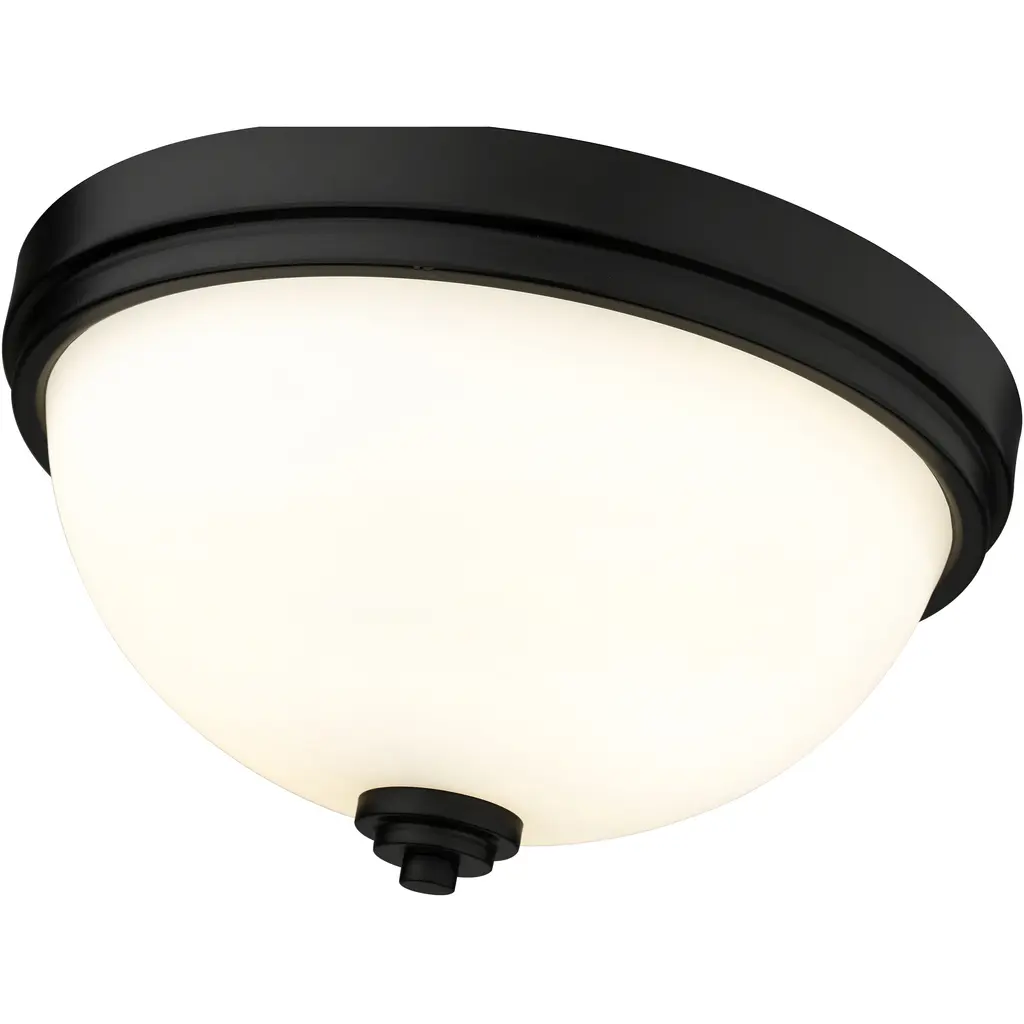 Make lighting work as a decor staple in a room devoted to easy living and solid taste from floor to ceiling. With a Matte Black finish metal mount and domed Matte Opal glass shade, this three-light flush mount ceiling light illuminates a larger living space as it completes a custom design scheme that works in modern or transitional settings.