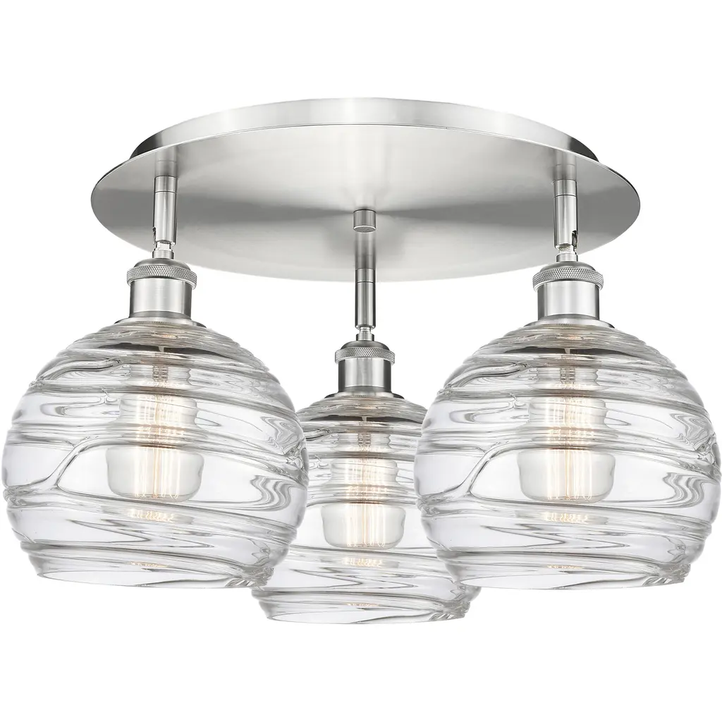 Athens Deco Swirl - 3 Light 20" Flush Mount - Matte Black Finish - Clear Deco Swirl Glass Shade