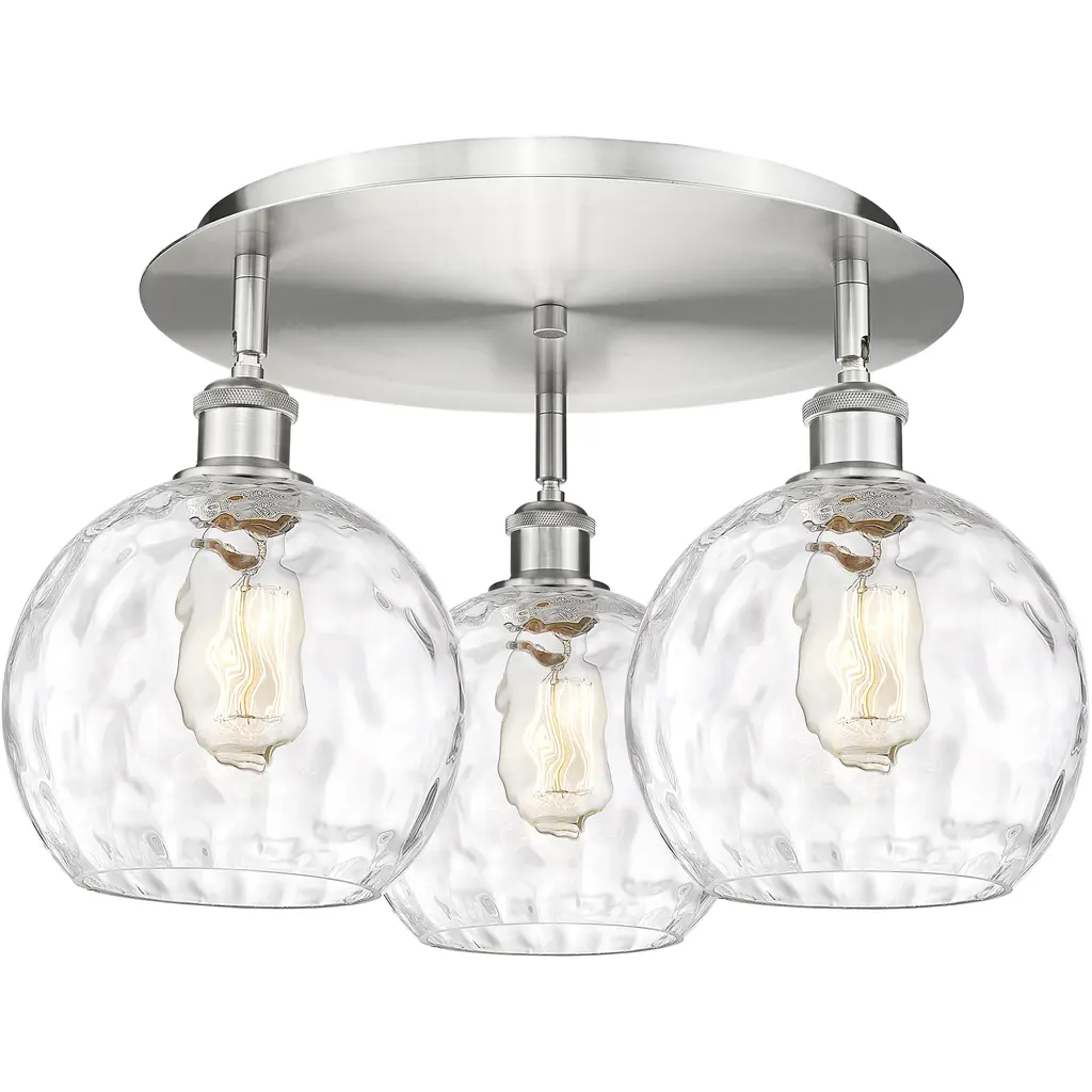 Athens Water Glass - 3 Light 20" Flush Mount - Polished Chrome Finish - Clear Water Glass Shade