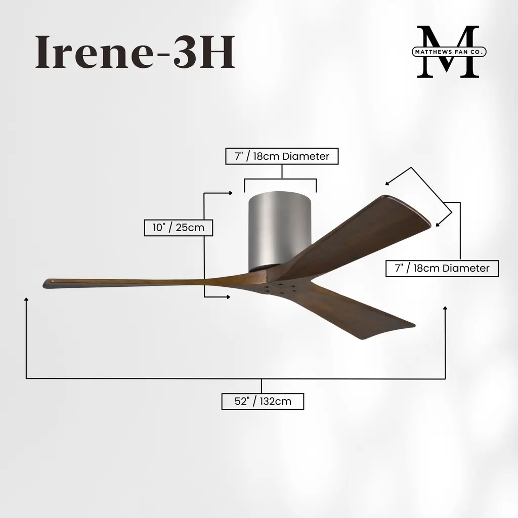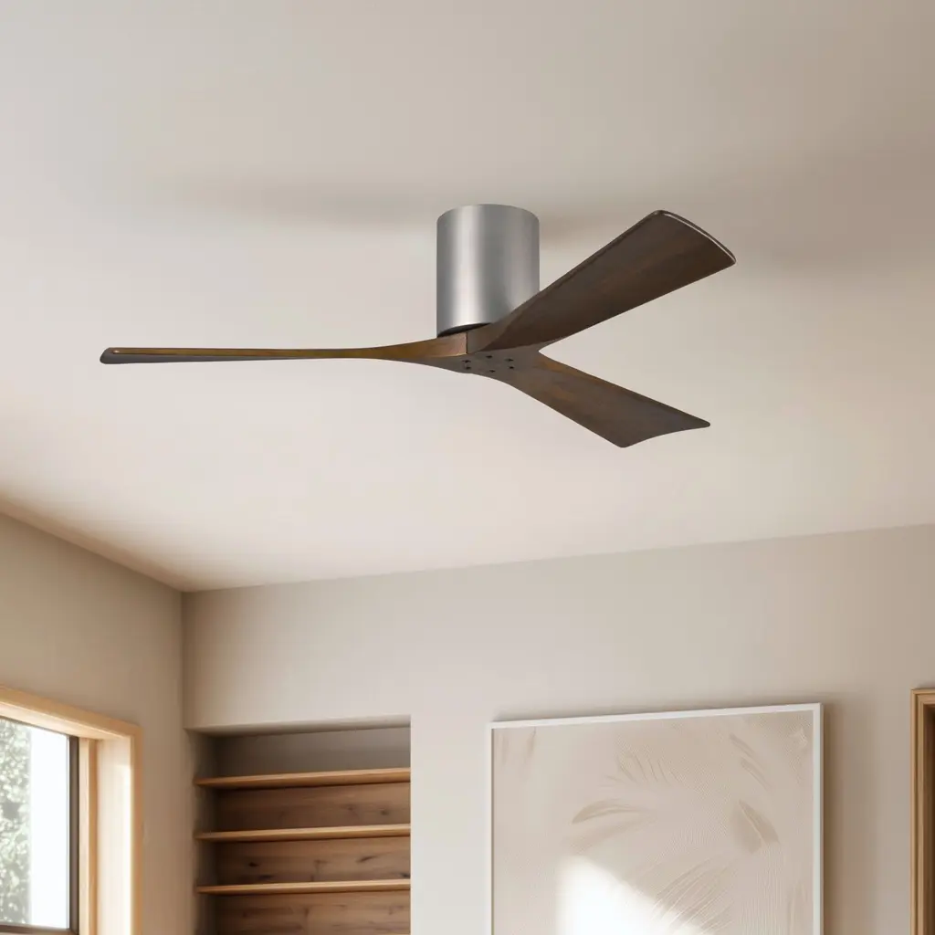 Atlas Irene-3H 52 Inch Brushed Nickel With Walnut Tone Blades Flush Mount Paddle Fan, Flush Mounted