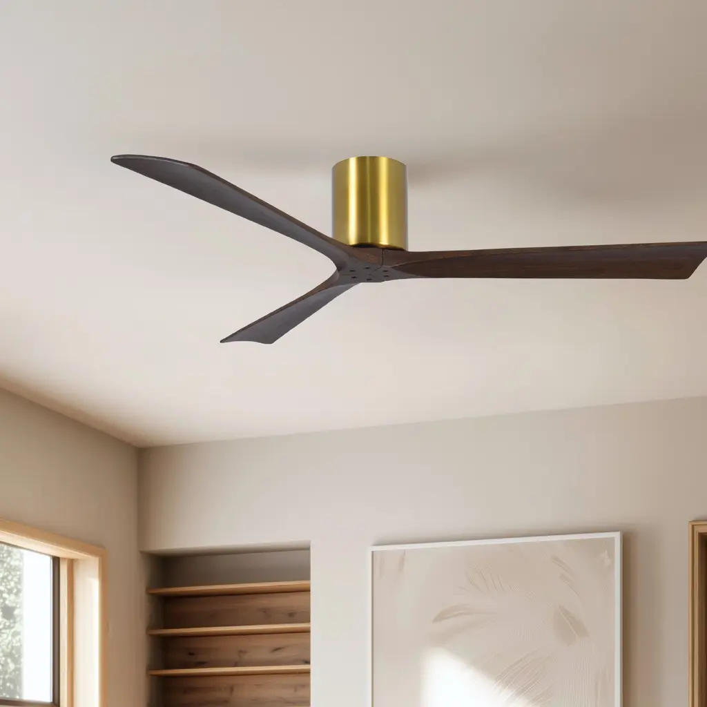 Atlas Irene-3H 60 Inch Brushed Brass With Walnut Tone Blades Flush Mount Paddle Fan, Flush Mounted