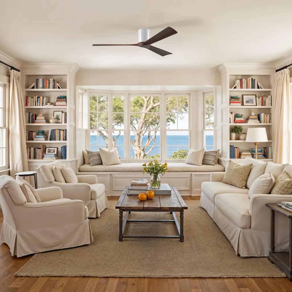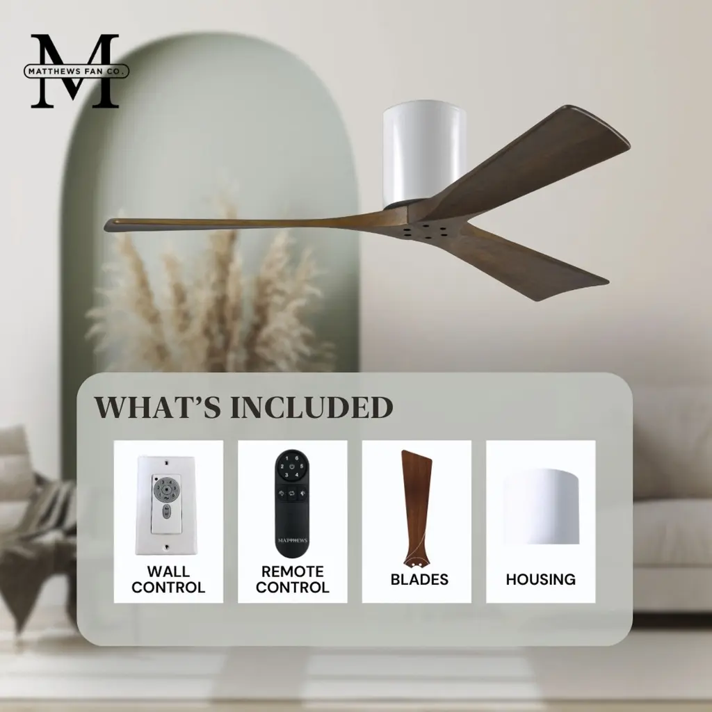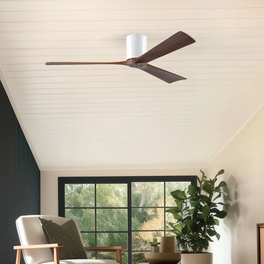 Atlas Irene-3H 60 Inch Gloss White With Walnut Tone Blades Flush Mount Paddle Fan, Flush Mounted