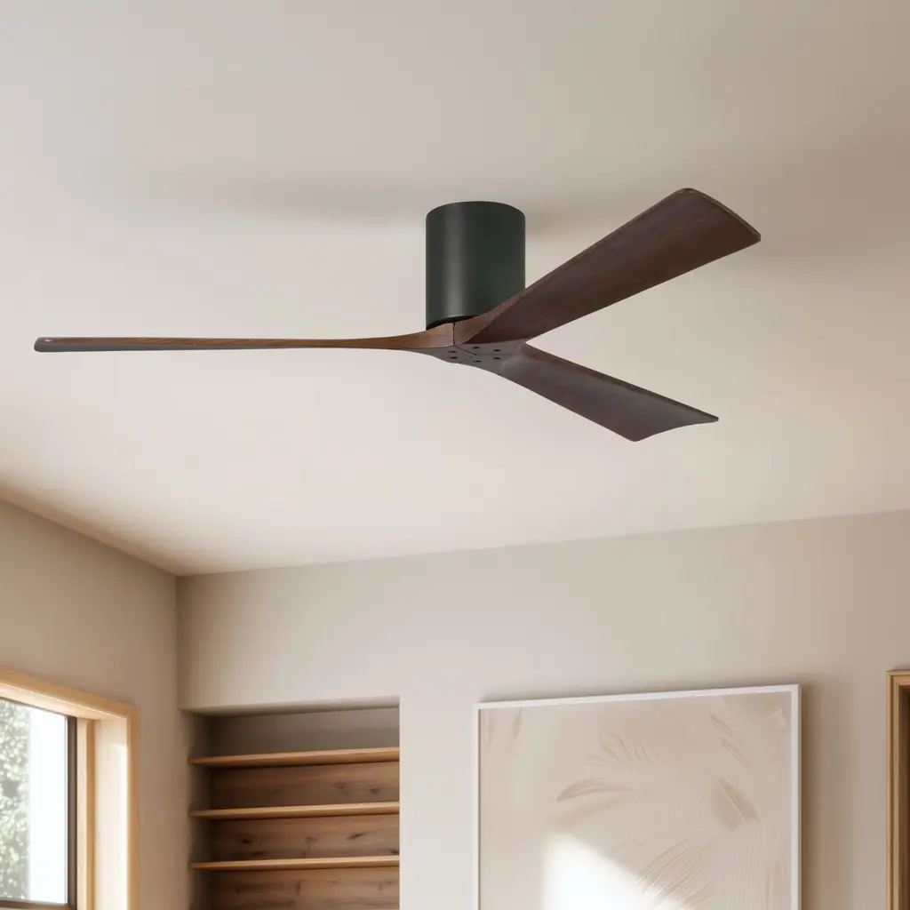 Atlas Irene-3H 60 Inch Matte Black With Walnut Tone Blades Flush Mount Paddle Fan, Flush Mounted