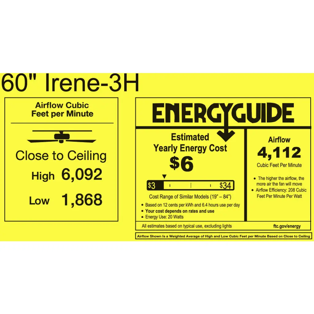 Atlas Irene-3H 60 Inch Textured Bronze With Walnut Tone Blades Flush Mount Paddle Fan, Flush Mounted