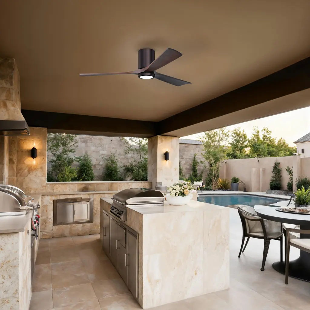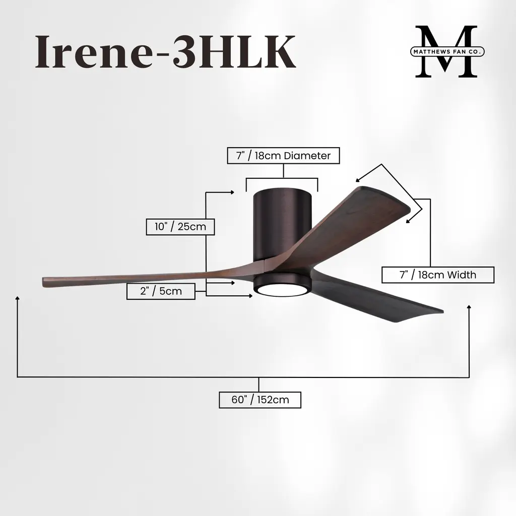 Atlas Irene-3Hlk 60 Inch Brushed Bronze With Walnut Tone Blades Flush Mount Paddle Fan, Flush Mounted
