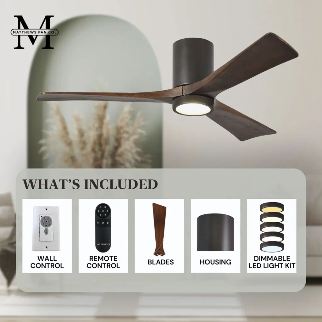 Atlas Irene-3Hlk 60 Inch Textured Bronze With Walnut Tone Blades Flush Mount Paddle Fan, Flush Mounted