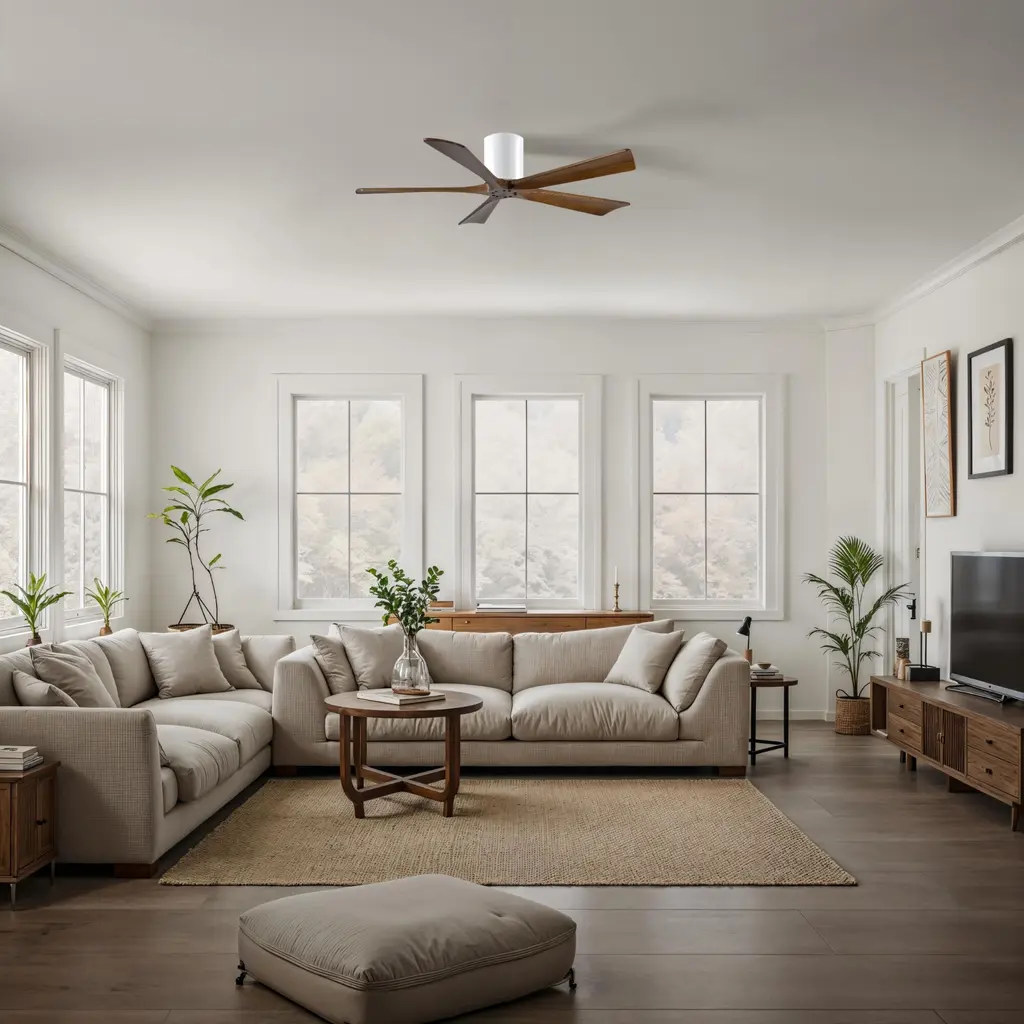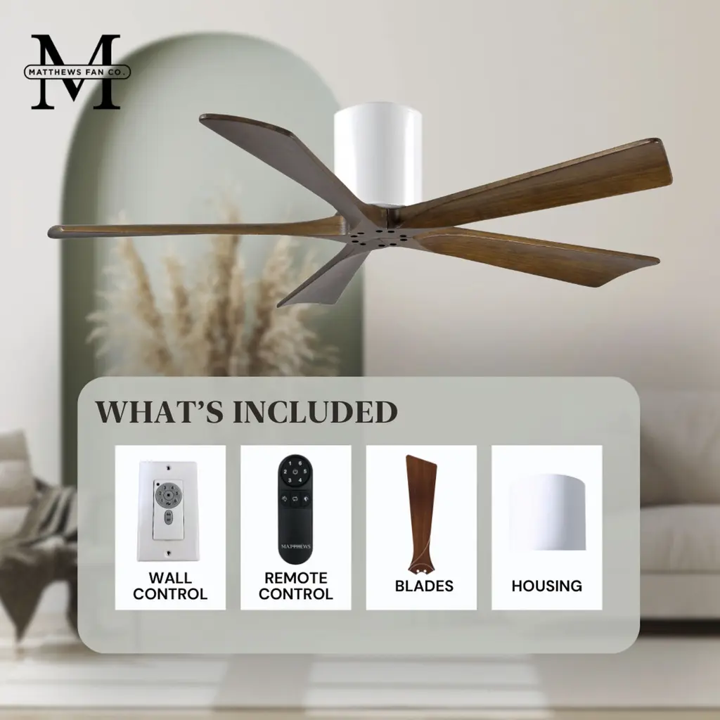 Atlas Irene-5H 52 Inch Gloss White With Walnut Tone Blades Flush Mount Paddle Fan, Flush Mounted