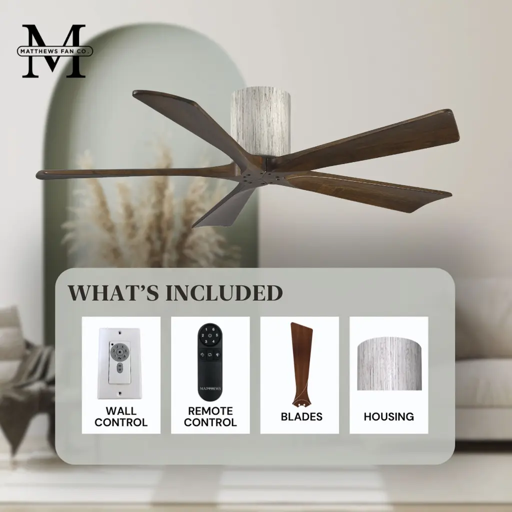 Atlas Irene-5H 60 Inch Barn Wood Tone With Walnut Tone Blades Flush Mount Paddle Fan, Flush Mounted