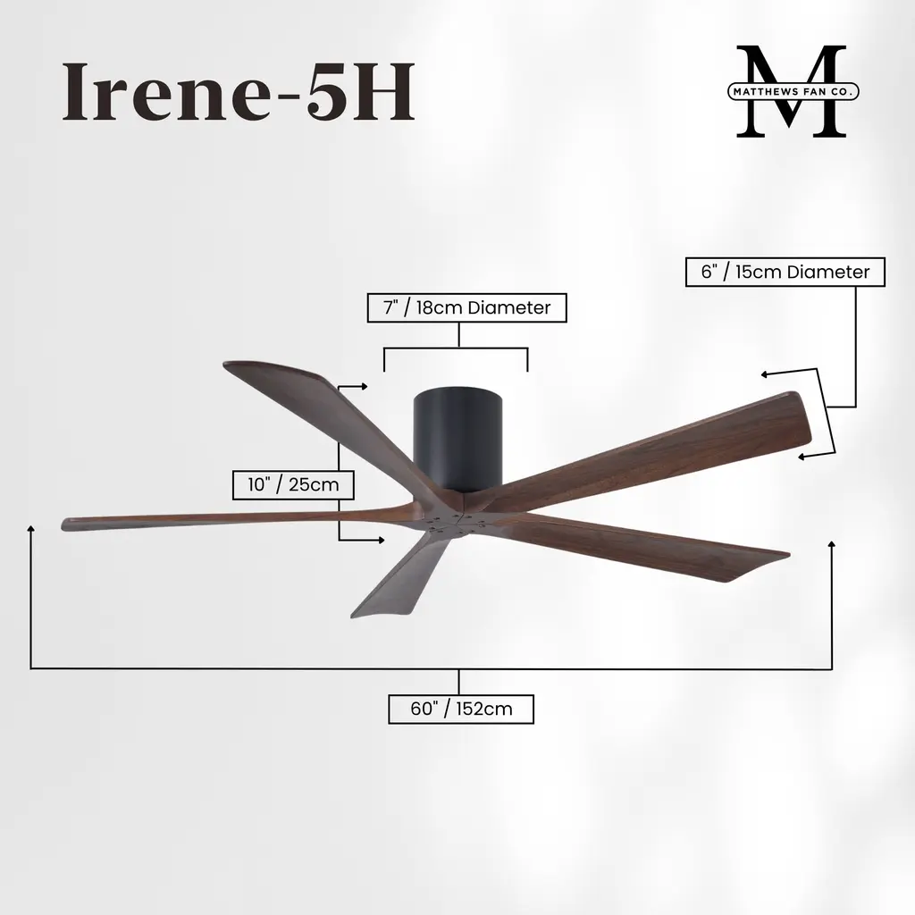 Atlas Irene-5H 60 Inch Matte Black With Walnut Tone Blades Flush Mount Paddle Fan, Flush Mounted
