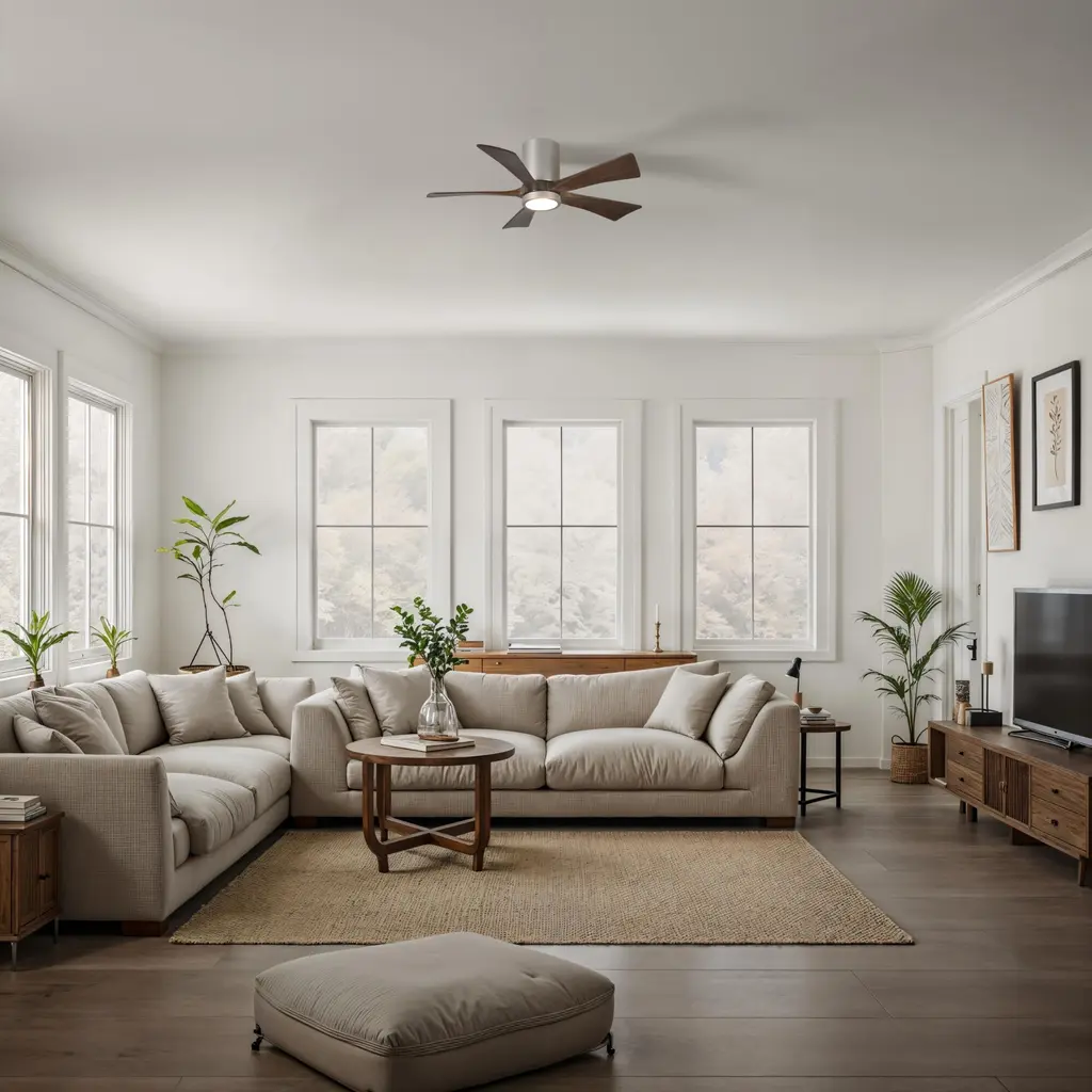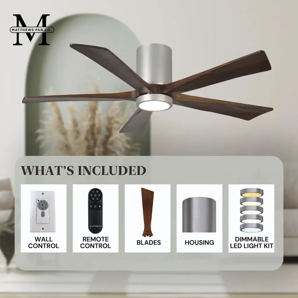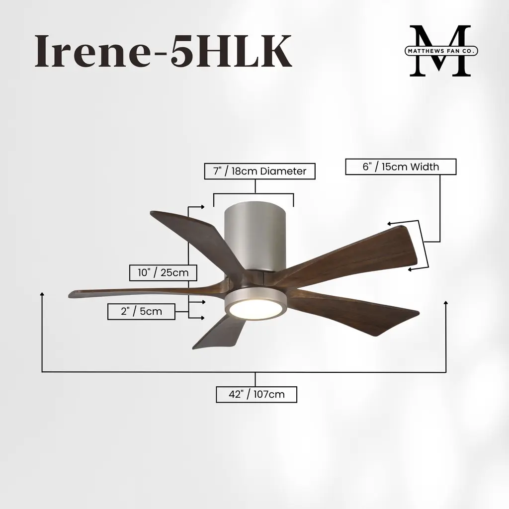 Atlas Irene-5Hlk 42 Inch Brushed Nickel With Walnut Tone Blades Flush Mount Paddle Fan, Flush Mounted