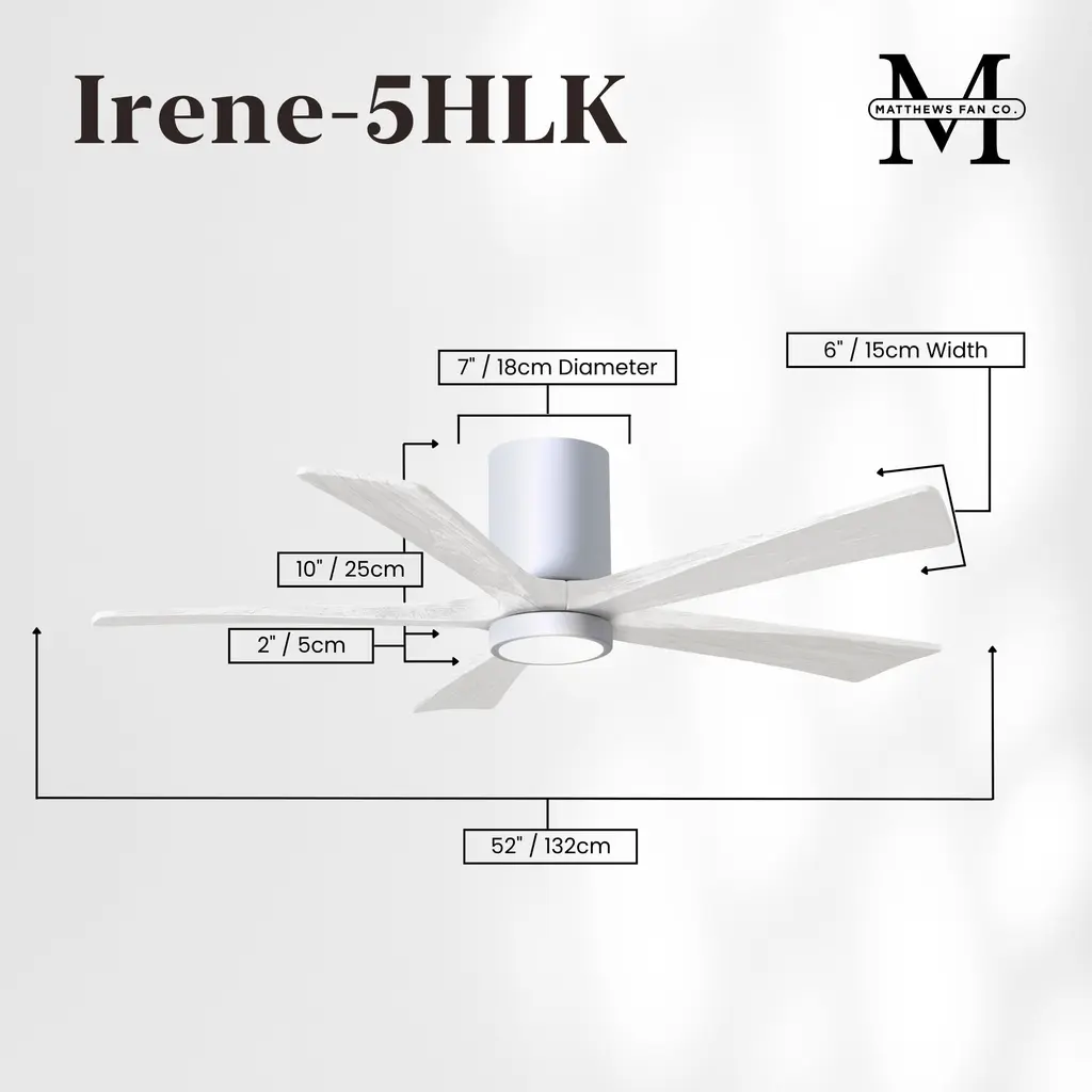 Atlas Irene-5Hlk 52 Inch Gloss White With Matte White Blades Flush Mount Paddle Fan, Flush Mounted