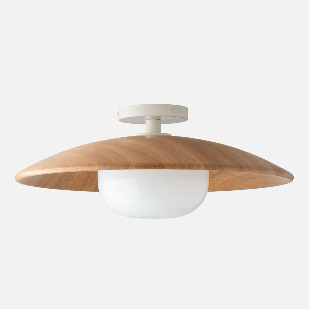 With its sensuous and beautiful mix of materials—oak shade, metal fixture, opal glass—the Atwood Flush Mount’s modern curved design lets you celebrate the natural beauty of the wood as it flows seamlessly into the warm glow of the opal glass shade.