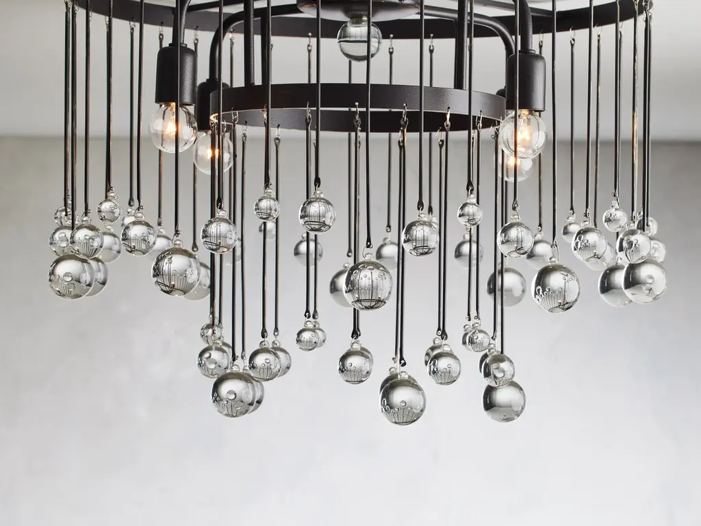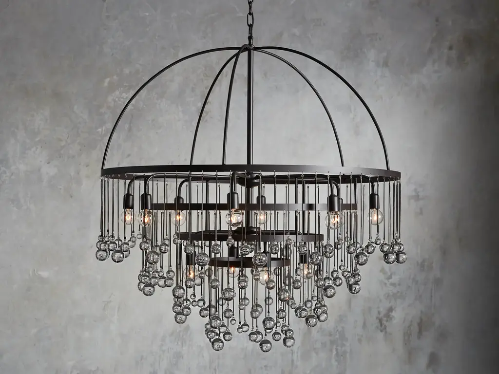 Equally at home in an ancient French castle or a downtown New Orleans loft, our Aubrey Flushmount creates dramatic ambiance in any setting. Crystal drops hanging in varying lengths from an iron cage create the illusion of movement as they catch the light, refracting brilliant beams around your room.