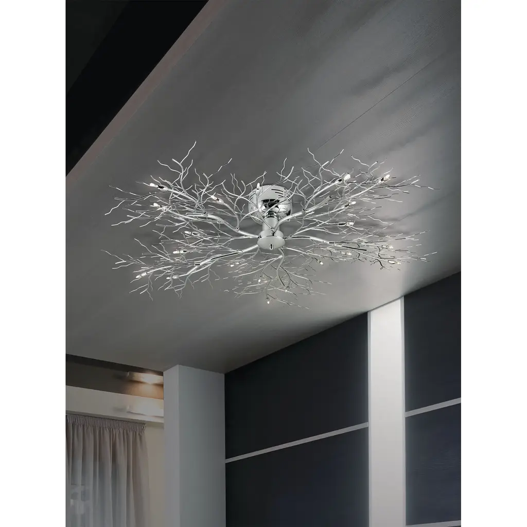 The intricate motley of fine metal work branches out in various directions. Inspired by nature, the chrome finish elevates this design to fit in numerous settings.