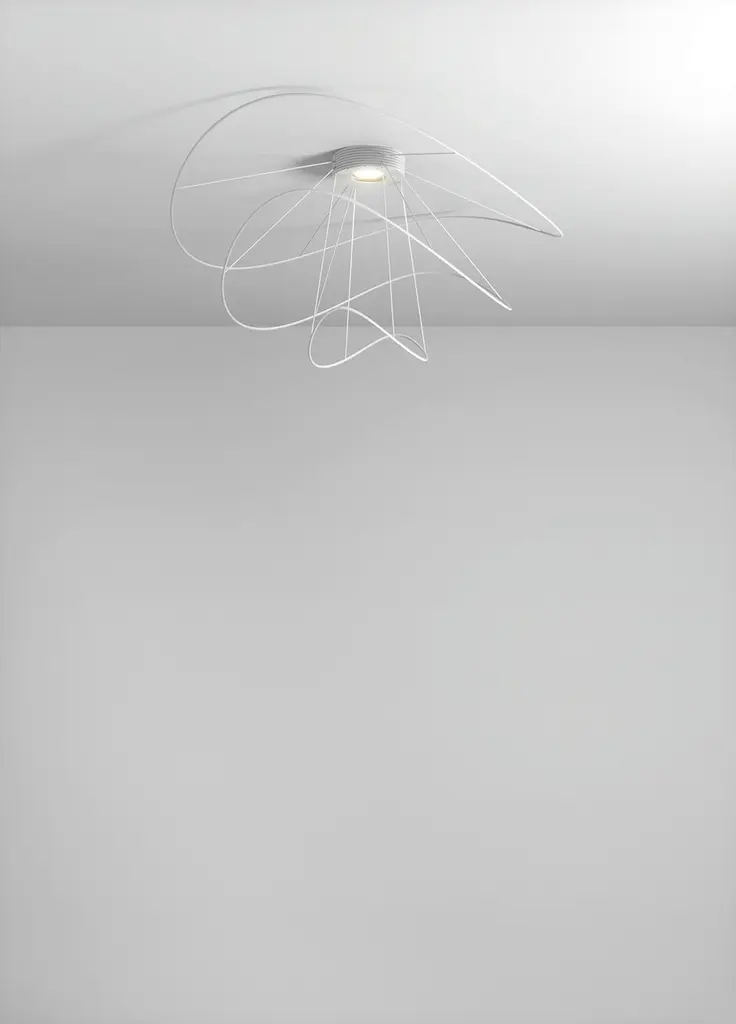 Axolight Hoops 3 Medium Flush Mount Ceiling Lamp in Gold by Giovanni BarbatoLines that dance voluptuously around a nucleus in a changing game of reflected shapes and light. The sinuosity of Hoops is a thin twirling thread, to be followed by the eyes.Grace, curves and matte. Working with Axolight, from various several years now he has designed Aibu and Hoops collections. The last one is an elegant and imposing metal suspension able to illuminate, with a direct and indirect light emission, and give personality to any space. The knowledge of materials and the transformation processes make Giovanni Barbato one of the most valuable lighting designers on the Italian scene.Additional information:Materials: Metal frameColor: Built in LED moduleCCT 3000 KDownlightInstalls over 4 in. octagonal J-boxSupply voltage ~220-240VSwitch mode: on-offLED 17W - diffused beamDRY LOCATION CRI90Dimmable trailing edge~1330 lm 78 lm/WDimensions: Ø 100 x 51 H cmAvailable in other color options: White, Black