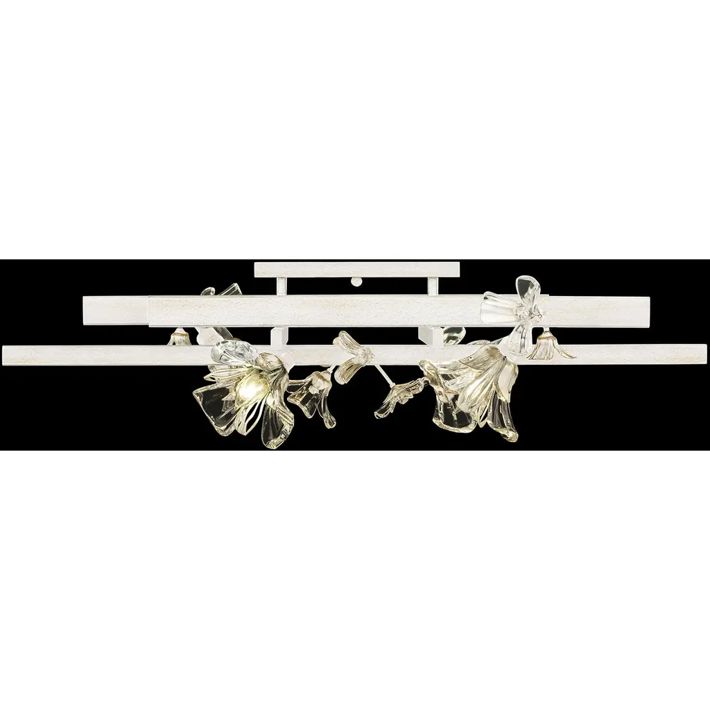 This collection is inspired by the craftsmanship of fine jewelry, runway fashion trends, and the beauty of nature itself. Its name is short for Azucena, a "Madonna Lily" in Spanish. This gold leaf flush mount features a flirtatious interplay of crystal