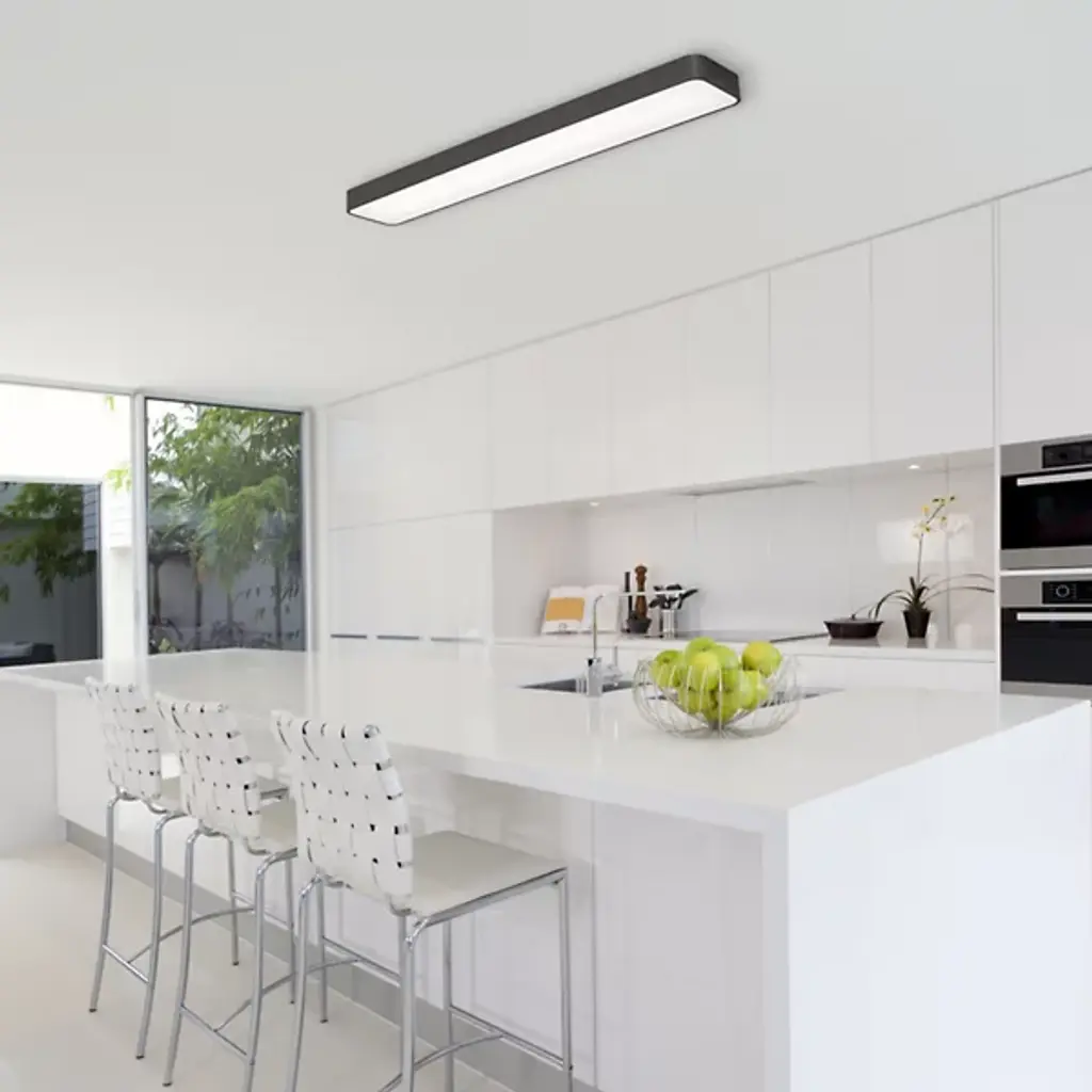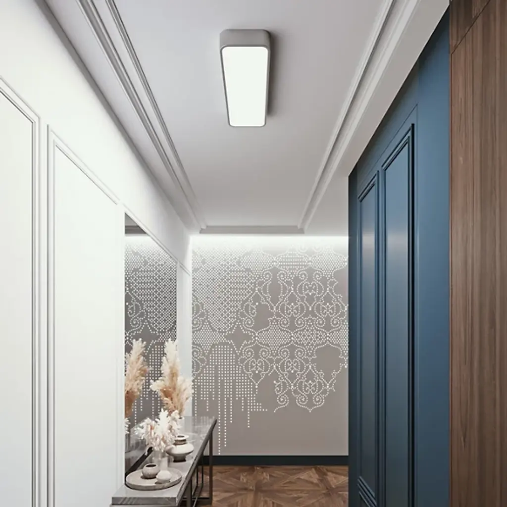 A clean yet soft look for modern interiors with lower ceilings. The Bailey LED Linear Flushmount by AFX Lighting features a soft-cornered rectangular design, with a wide steel band supporting an acrylic lens. The diffuser both keeps the integrated LEDs hidden within and then diffuses the light they produce into a vibrant all-around glow. The long and lean proportions of this flushmount make it ideal in similarly shaped rooms, such as a galley-style kitchen or laundry room.