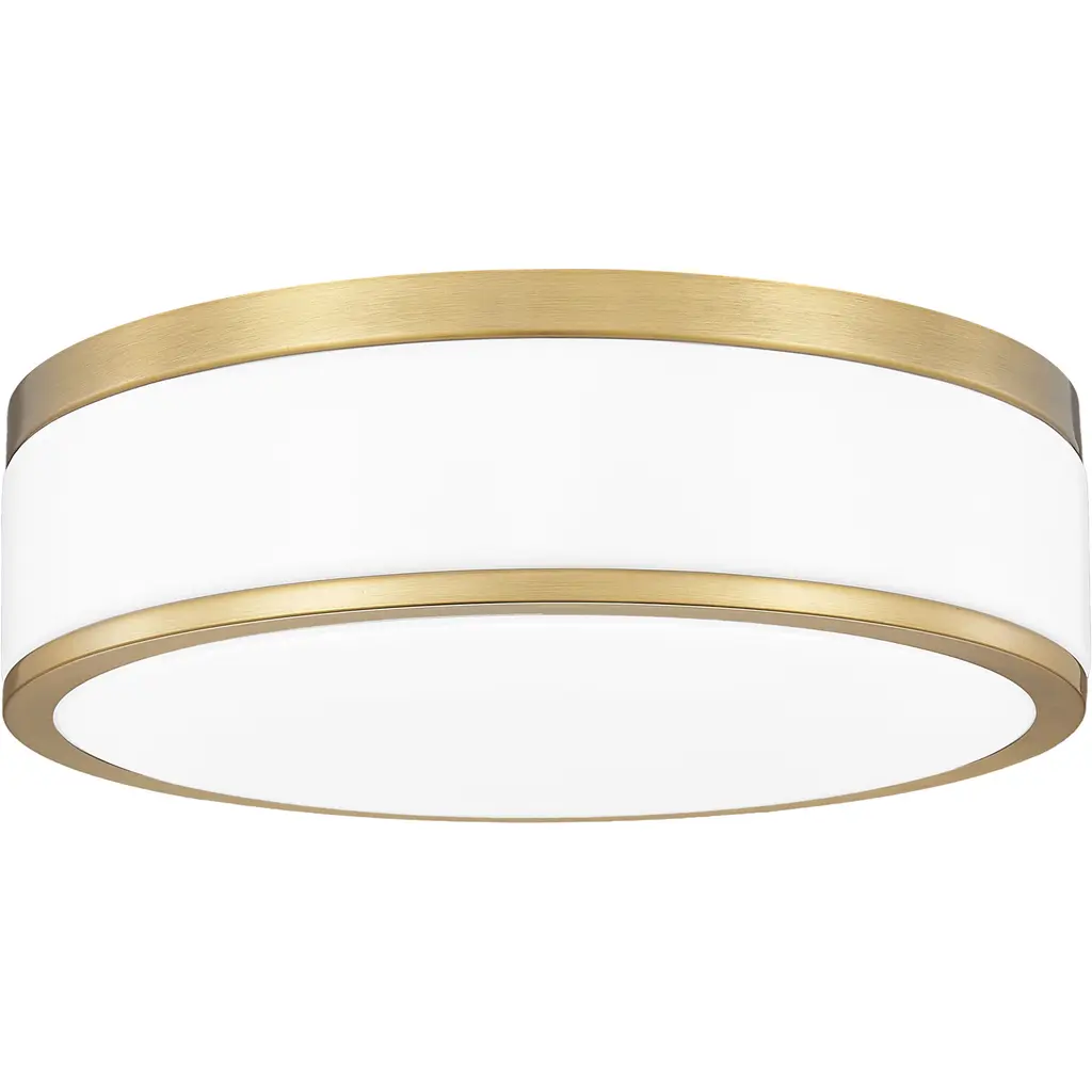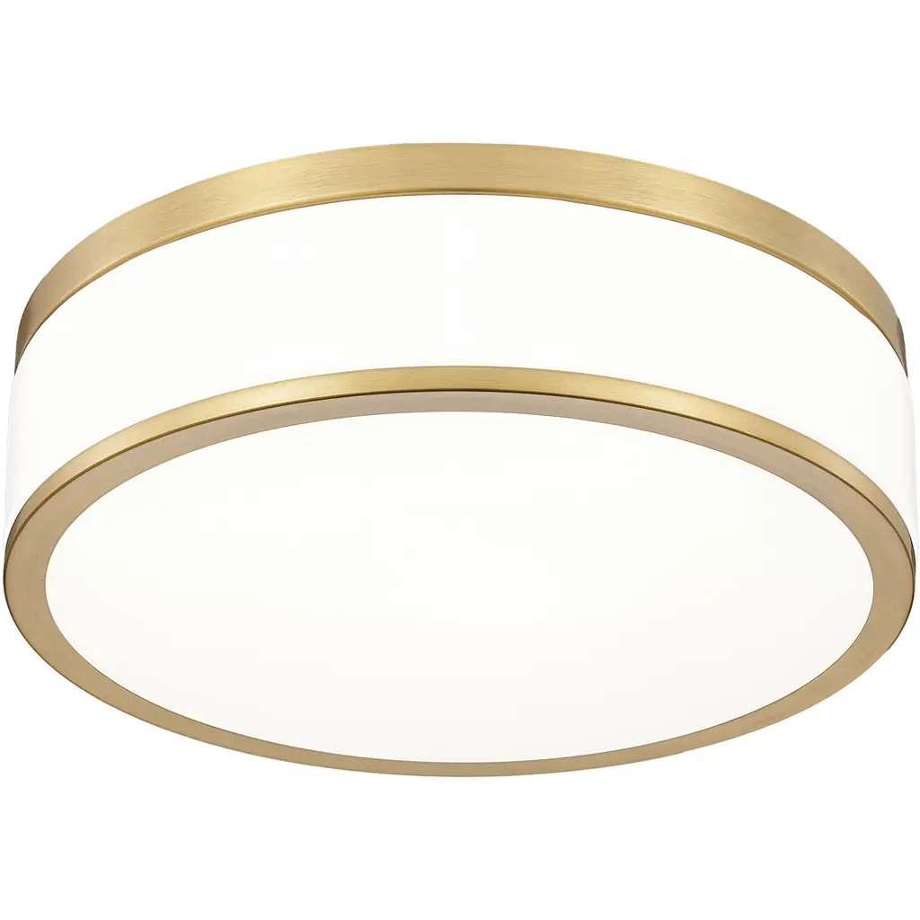 Introduce rich warmth with the modern gold finish of a contemporary one-light flush mount ceiling light. From the Ballord collection, it features a charming round silhouette with a frosted diffuser for soft illumination that's ideal for a cozy den, bedroom, or sitting area.