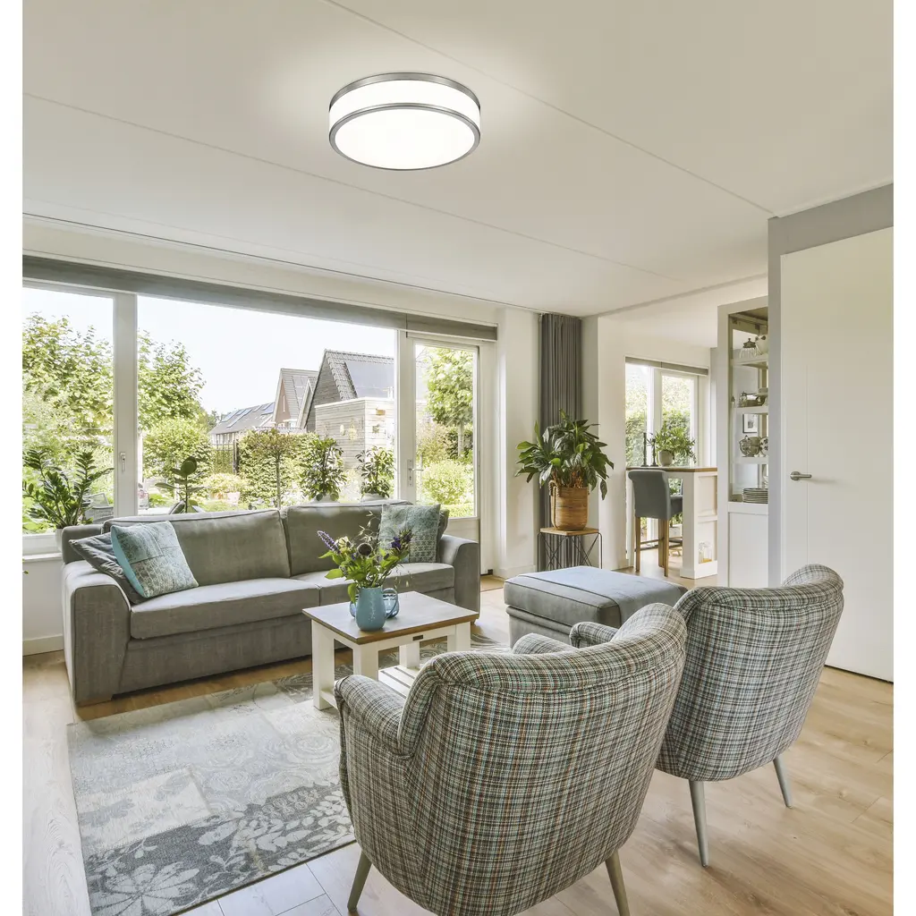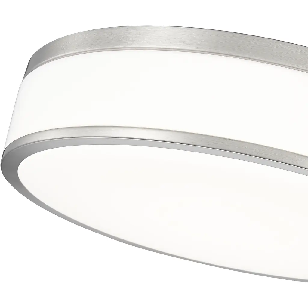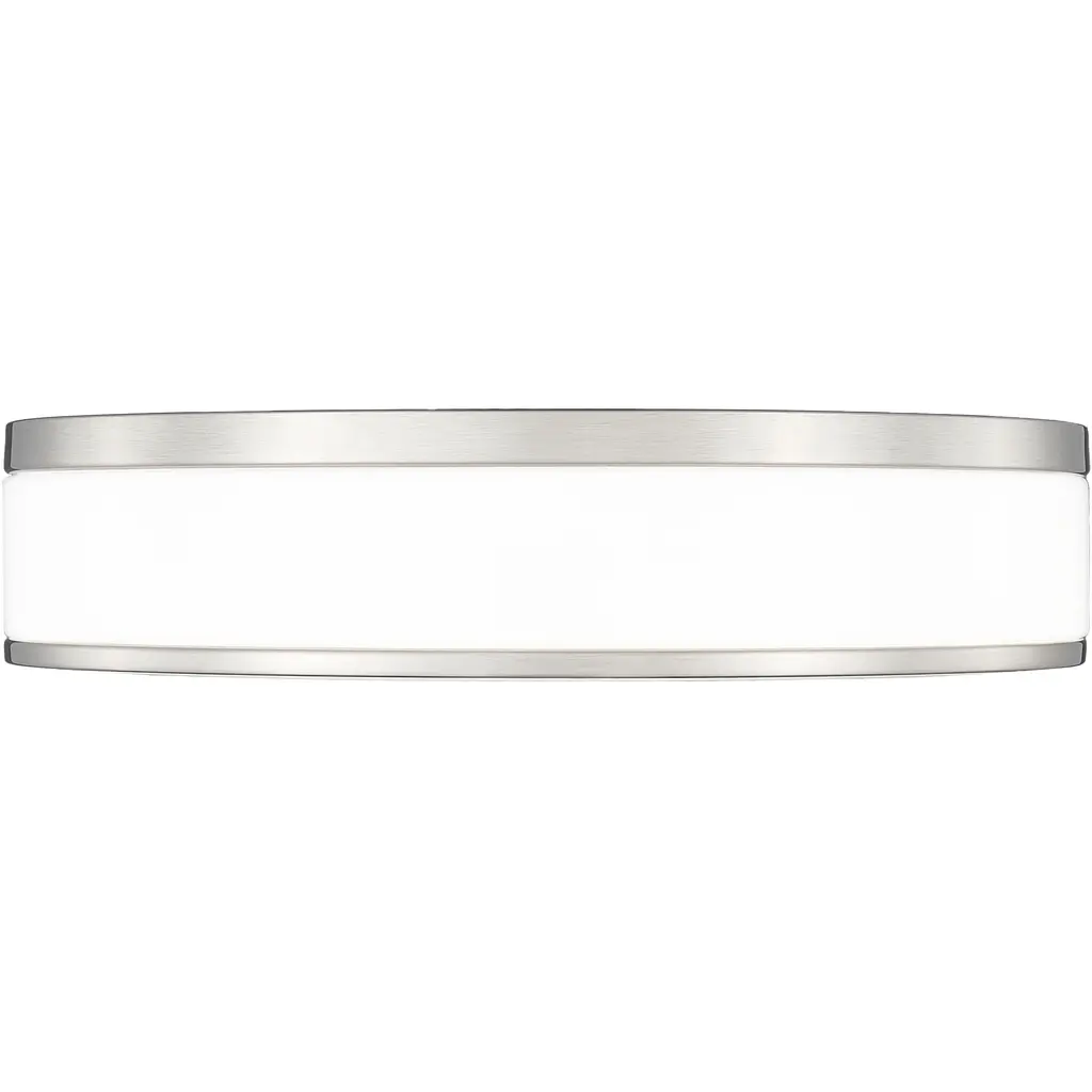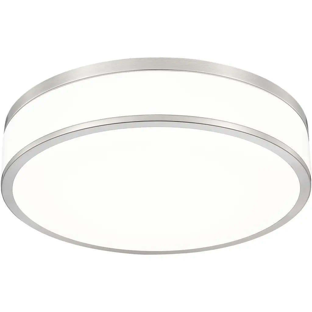 Fashion forward brushed nickel sets the tone for a refined modern one-light flush mount ceiling light. Bands of brushed nickel finish steel create a sleek frame, while frosted acrylic diffusers ensure soft, inviting lighting for your bedroom, den, or living room seating group. This LED fixture is an energy efficient choice for your home.