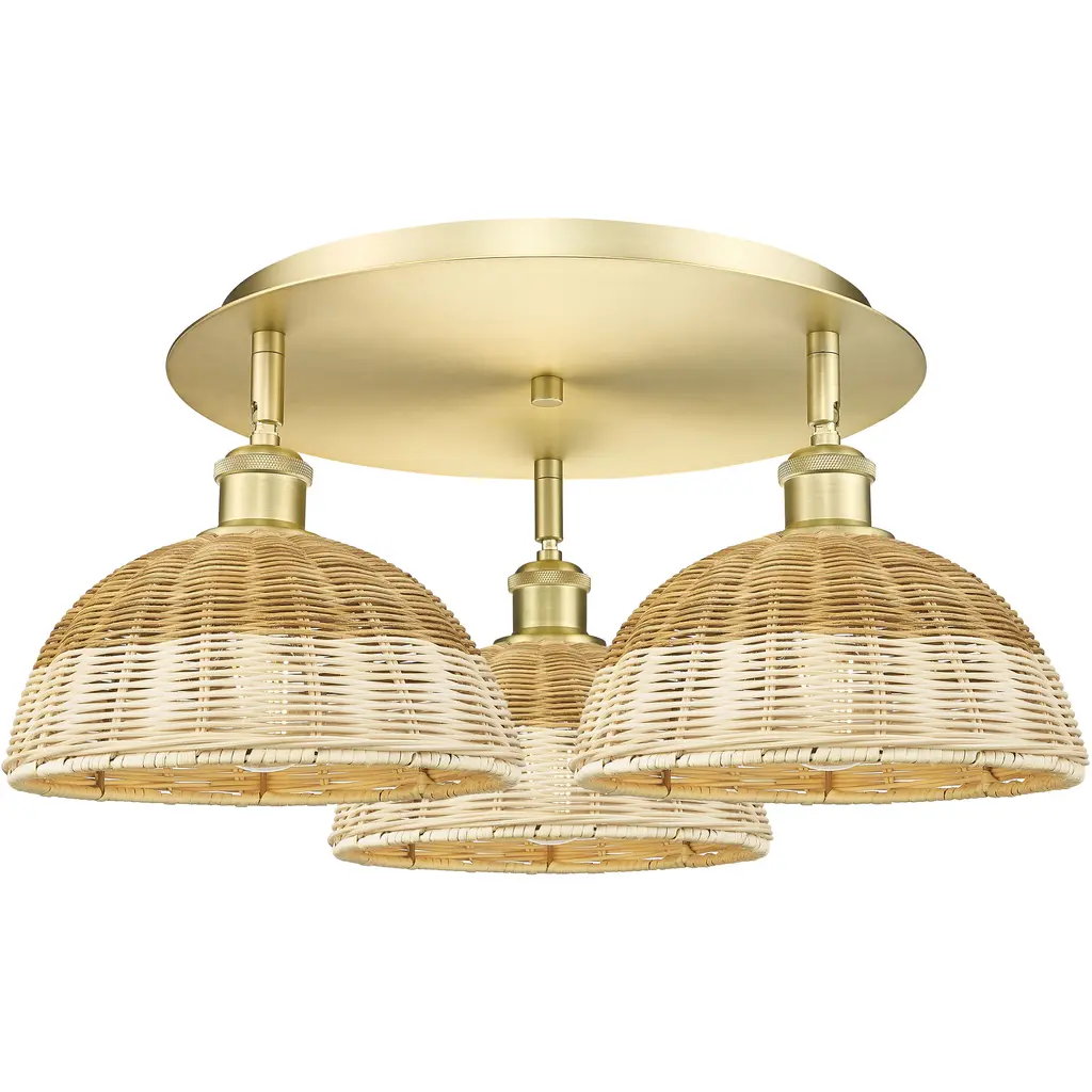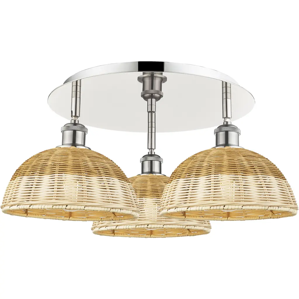 Ballston Bristol Natural Ii 3 Light 20.75 Inch Satin Nickel Flush Mount Ceiling Light