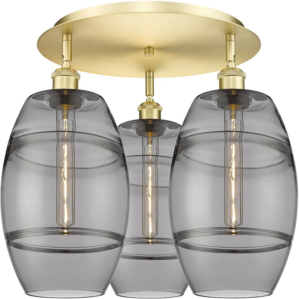 Ballston Rochester 3 Light 21.75 Inch Satin Gold Flush Mount Ceiling Light
