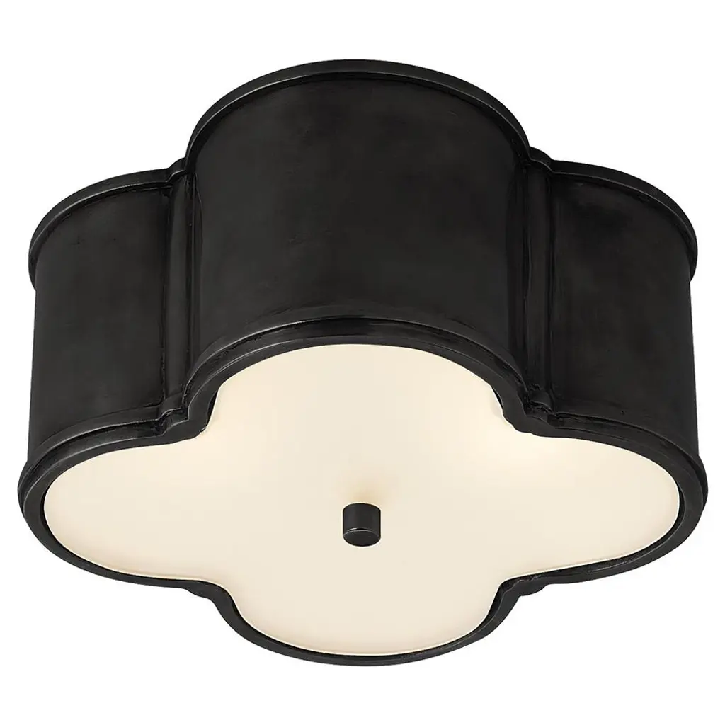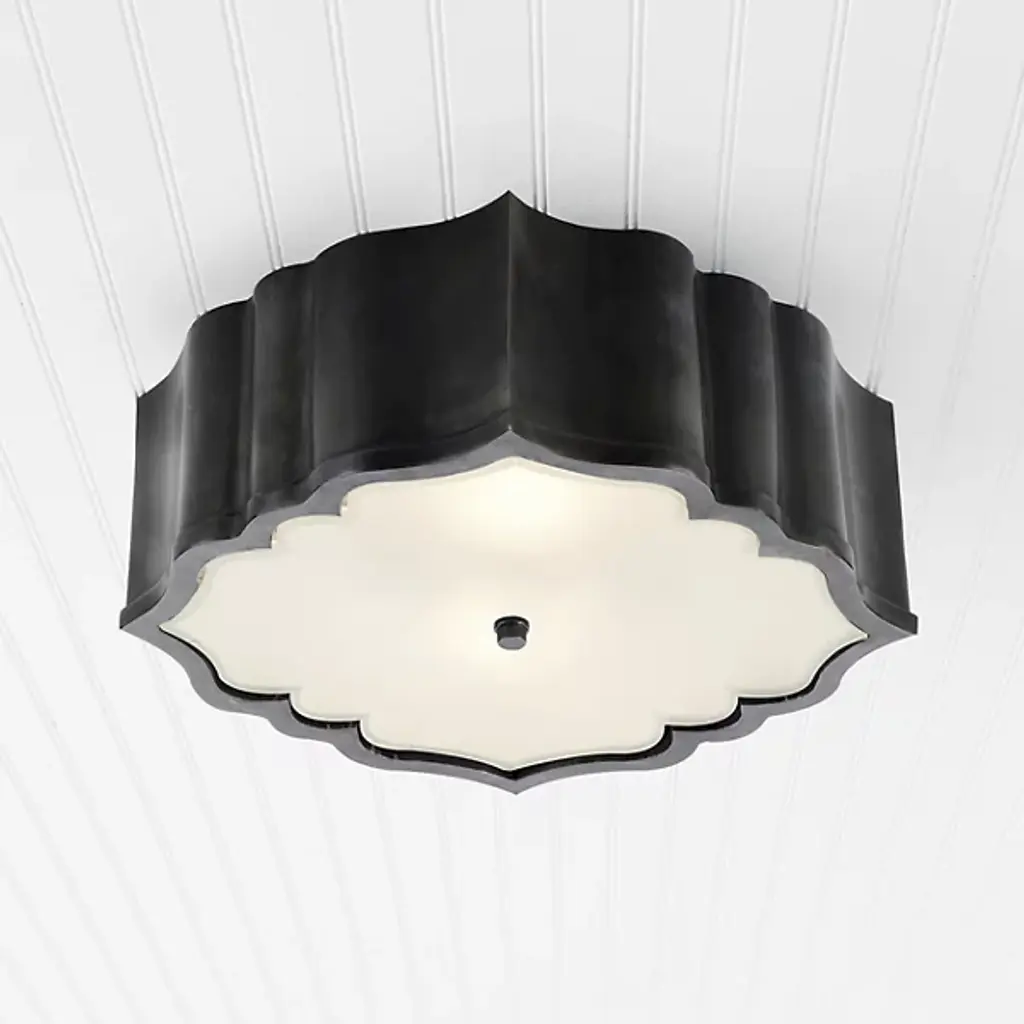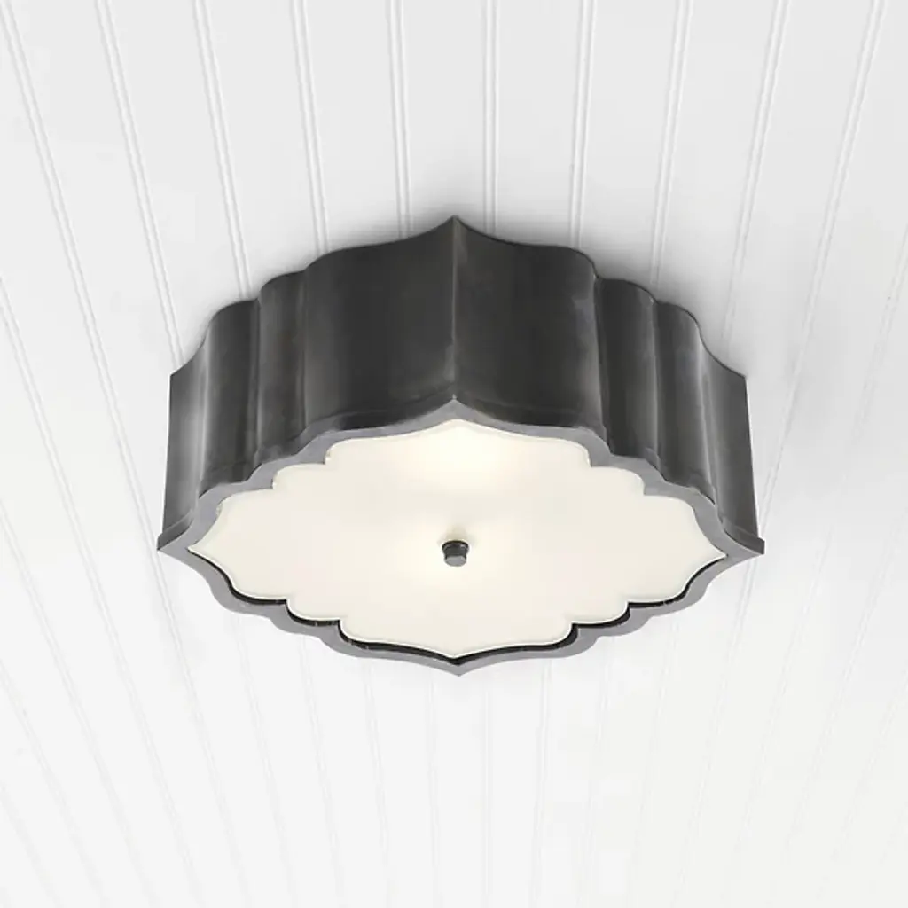 The Balthazar Flushmount by Visual Comfort Signature, formerly known as Visual Comfort, is not your standard ceiling light. This refined piece, instead, features a decoratively sculpted floral-esque metal frame which envelops a seamless Frosted glass shade (accented by a small rounded finial). The lighting provided is equally stunning, projecting a clean, even ambiance that enhances your surrounding décor.