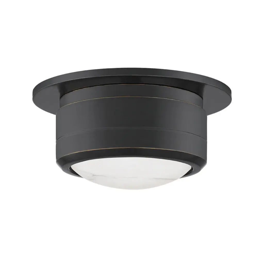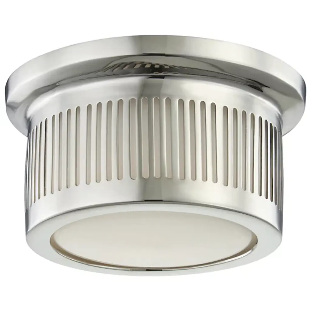 Evocative of cargo ship lights. The Bangor LED Flushmount from Hudson Valley Lighting is a scaled down version with upscale impact. Showcasing a round Brass housing with cut out detailing, this modern ceiling light has an inset Opal Matte Glass diffuser that warms the glow of the crisp, glare-free 12W LED lighting on the surrounding area. Dimmable, this versatile design mounts on the ceiling for a customized look in a kitchen or powder room.