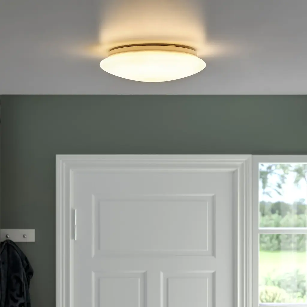 BARLAST LED ceiling/wall lamp - white 10 ". Tested and approved for bathroom use. Gives a diffused light which is good for spreading a lot of light around the room. Built-in LED light source. Suitable for damp location. Approved for IP44.