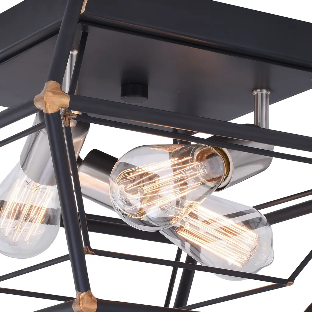Showcasing a unique play on geometry, the Bartletts concentric shapes and open cage design pull you into its multiple layers of linear beauty. An oil rubbed bronze finish contrasts with touches of satin nickel and brass to highlight this industrial inspired collection. Combine that with vintage Edison style filament bulbs to complete the look. This flush mount ceiling light is ideal for hallways, living rooms, bedrooms, entryways.