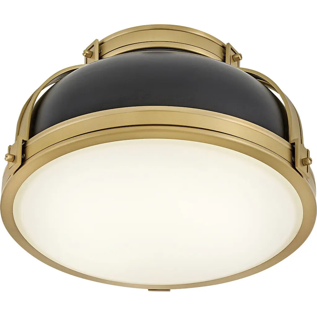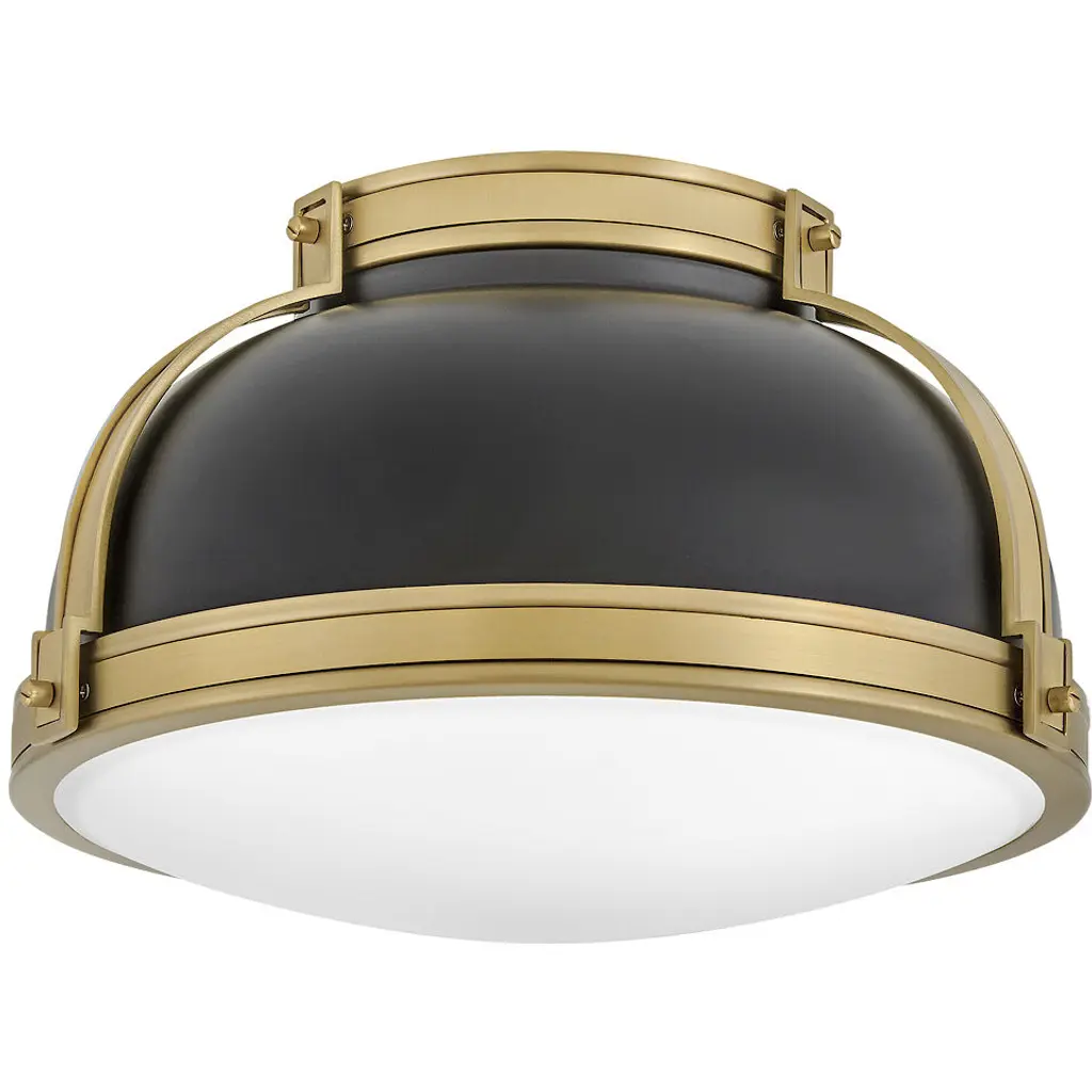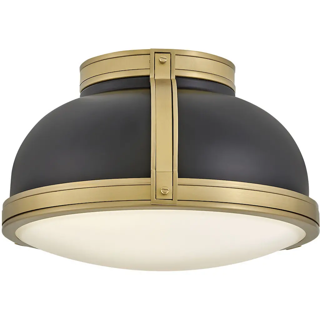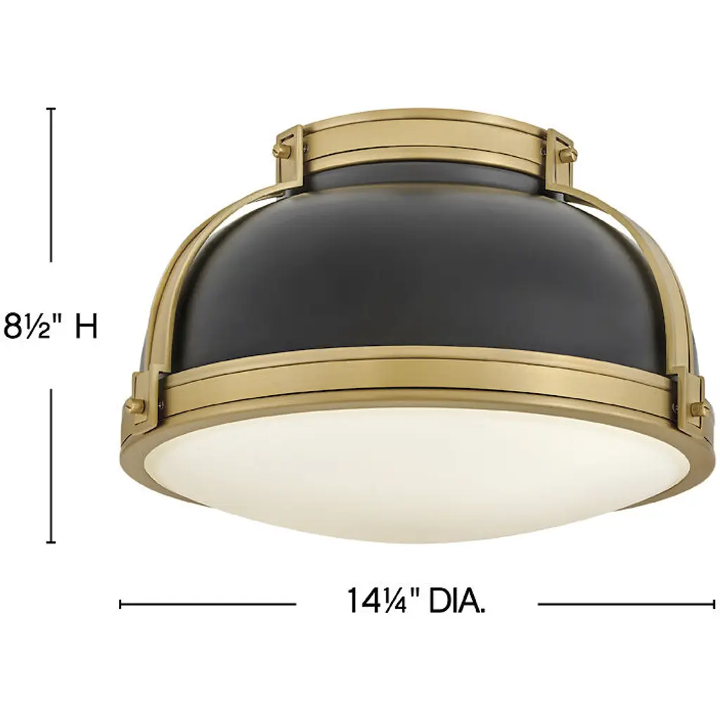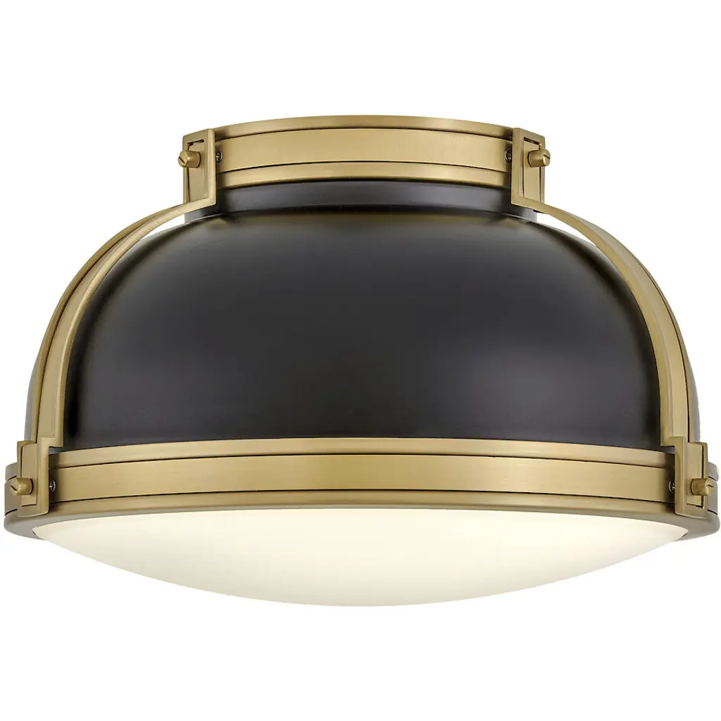 Barton 2 Light 14.25 Inch Black With Lacquered Brass Flush Mount Ceiling Light