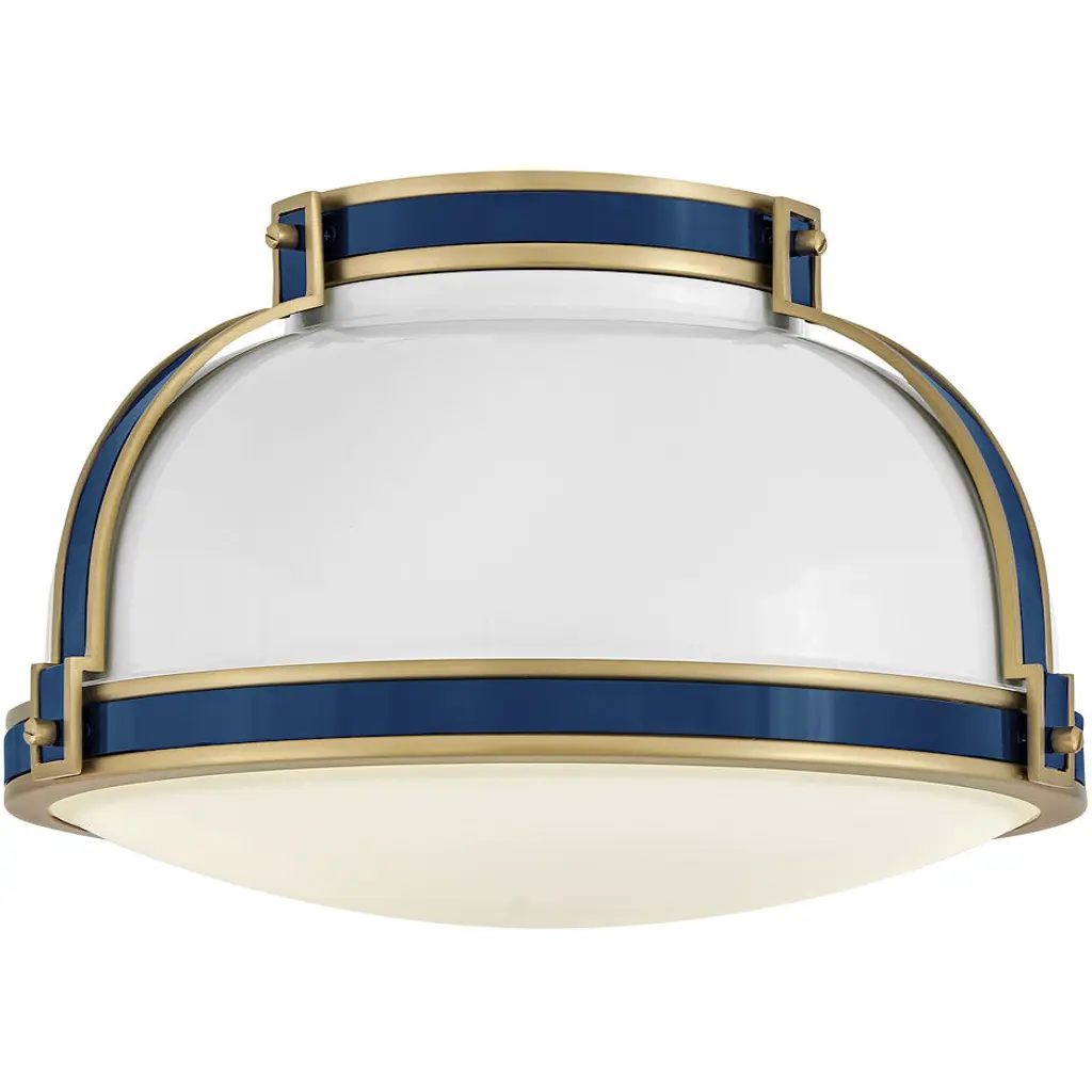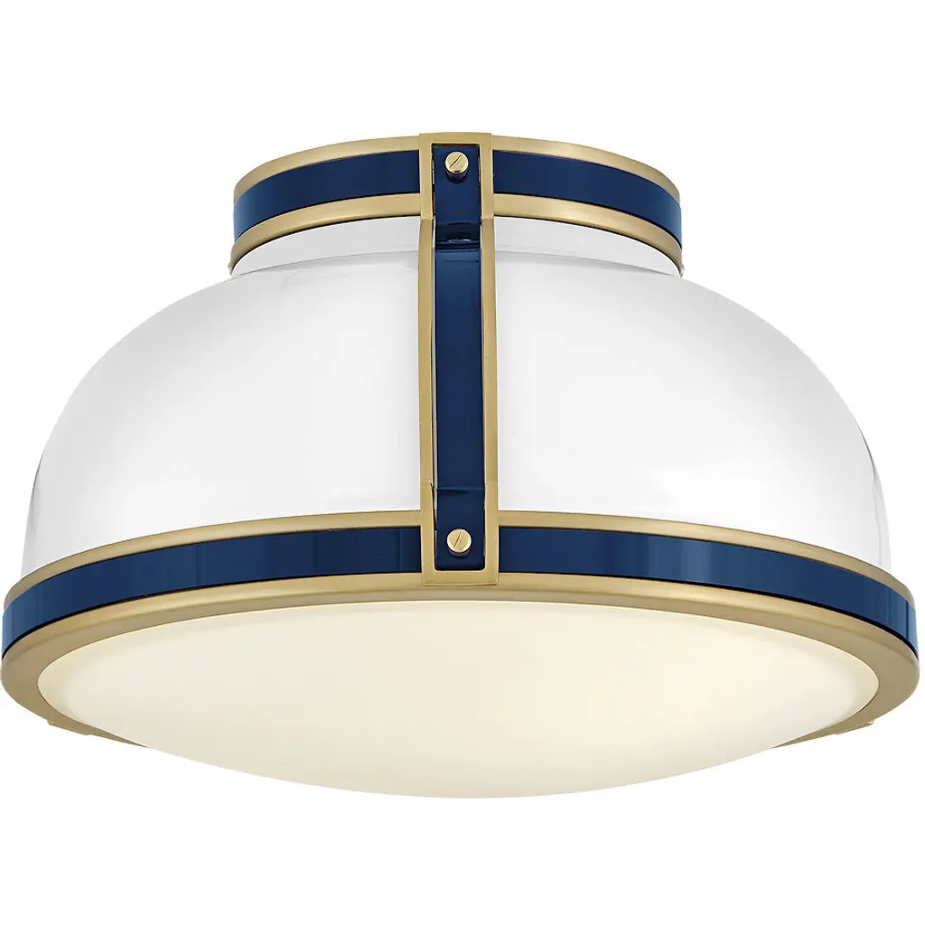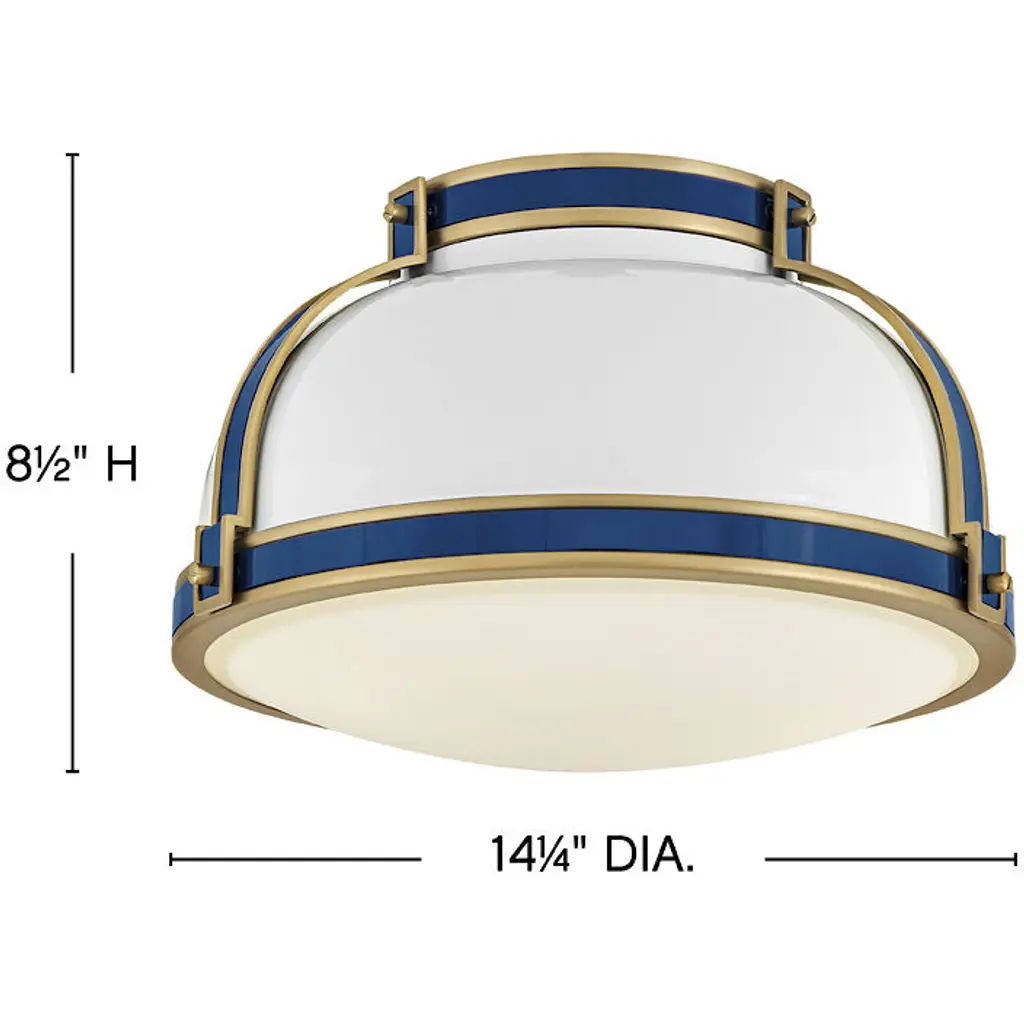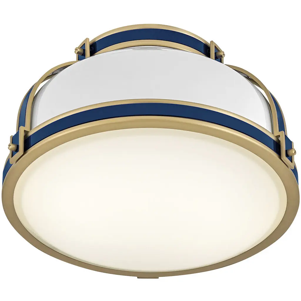 Barton 2 Light 14.25 Inch Gloss White With Lacquered Brass And Vivid Navy Flush Mount Ceiling Light