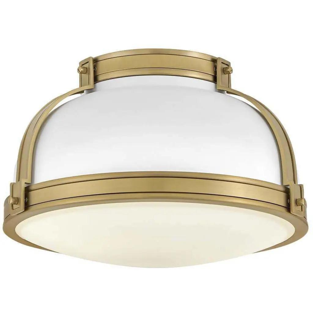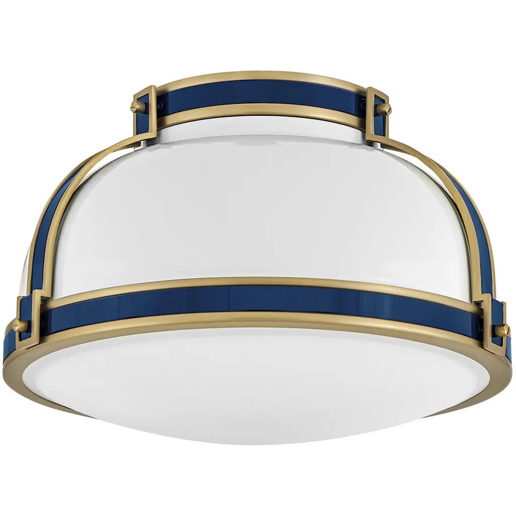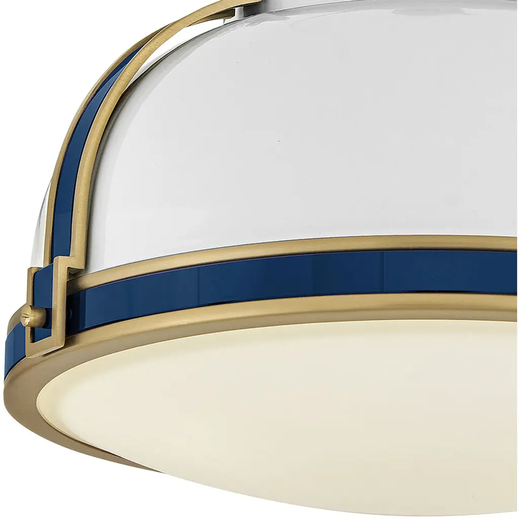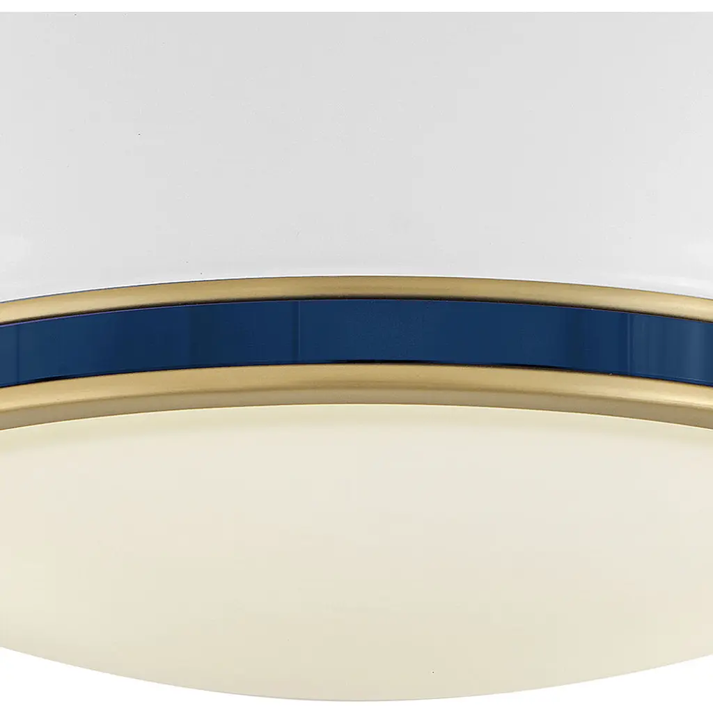 Barton 2 Light 14.25 Inch Gloss White With Lacquered Brass And Vivid Navy Flush Mount Ceiling Light