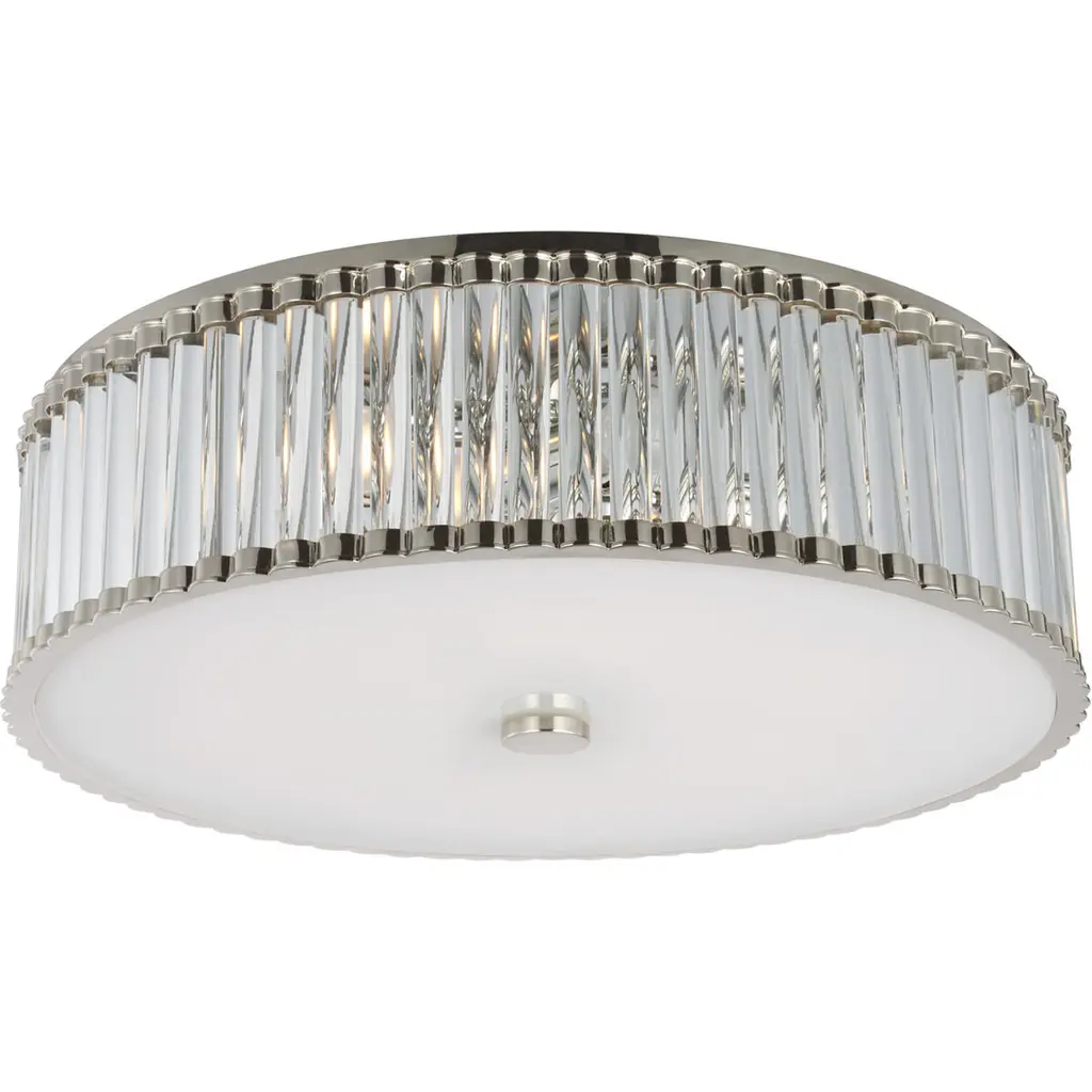 The Basil Flushmount with Clear Glass Rods by Visual Comfort Signature, formerly known as Visual Comfort, uses a classic quatrefoil shape to deliver design-minded style to any space. Clear Glass rods act as the shade and, along with the Frosted Glass diffuser, beautifully distribute light to the room. Detailed metalwork with timeless finishes round out this fixture. Dimmable with a standard incandescent dimmer (not included).