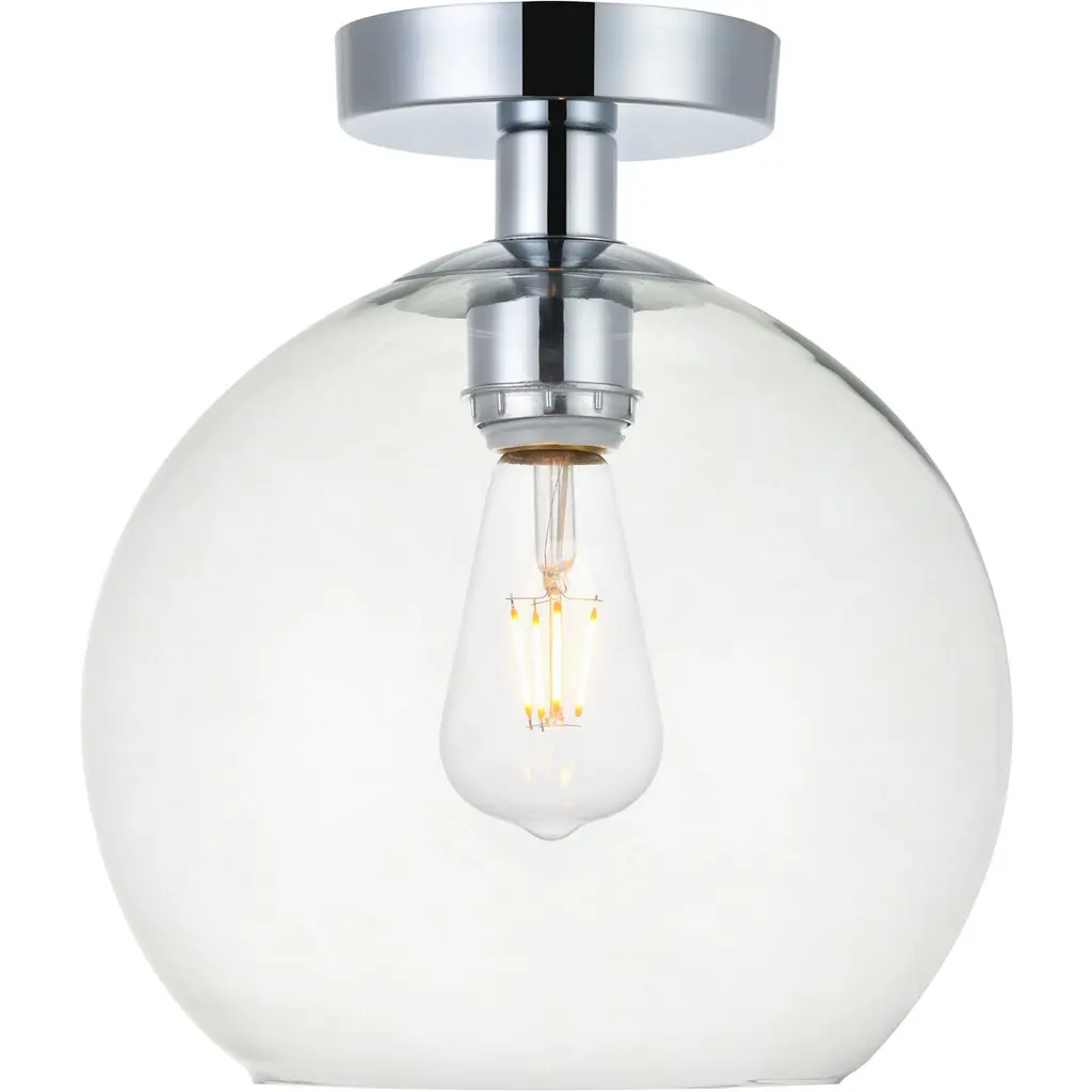 Refined style with a practical design, Baxter flush-mount ceiling lamps bring cosmopolitan sophistication anywhere, especially to an entryway, hallway, bathroom, kitchen, or closet. The smooth iron frame features a disk-shaped canopy and comes in a black finish. The clear spherical glass shade remains open at the center to allow for effortless replacement of the filament-style bulb (not included). Living in the big city has never been this easy.